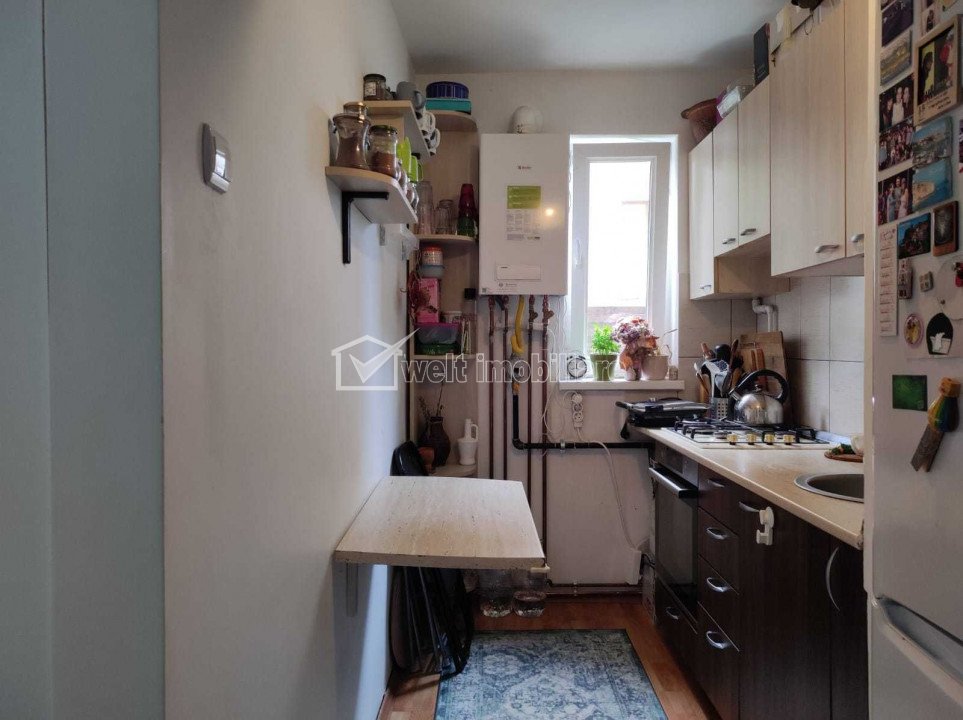 Characteristics Property type Apartment Rooms number 2 Kitchens number 1 Bathrooms number 1 Parking no Build area 49 m2 Ussefull area 43 sqm Divided Semidecomandat Comfort 1 Floor ground floor/10 Build with Brick Apartment Description Real estate Agency Welt Imobiliare is offering for sale apartment with 2 rooms, located in Cluj-napoca, zone Gheorgheni. The apartment comfort 1 semidecomandat in a bloc with 10 floors, has 1 kitchen, 1 bathroom .The apartment is finisat has parquet, sand stone, faience, washable walls, heat station, gas counters. Among finishing there are: izolatii termice (bloc izolat termic), pereti (vopsea lavabila, faianta), podele (parchet, gresie), usa intrare (metal) Among equipment we are mentioning: alte spatii utile (debara), bucatarie (mobilata, utilata), contorizare (apometre, contor gaz), mobilat (complet), dotari imobil (interfon, lift), electrocasnice (masina de spalat rufe, aragaz, hota) Property ID - P31111 Utilities, Finishings General utilities: Electricity, Water, Gaz, DrainHeating system Heating, HeatersFinishings Parquet, Sandstone, Faience, WashableEquipment Gas meters Views number: 3145 Updated: 2023-06-21 14:44:13