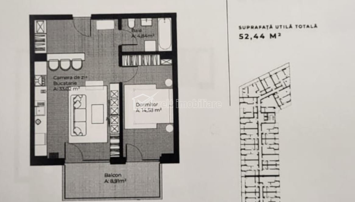 Characteristics Property type Apartment Rooms number 2 Kitchens number 1 Bathrooms number 1 Balconier number 1 Parking yes Build area 60 m2 Ussefull area 52.44 sqm Divided Semidecomandat Floor 1/7 Build with Brick Build year 2026 Apartment Description For sale 2-room apartment in Gheorgheni neighborhood, Iulius Mall area. It is located on the 1st floor and has a usable area of 52.44 sq m. Divided into living room + kitchen, bedroom, bathroom and balcony. The apartment is semi-finished and is located in a new building. An underground parking space can be purchased for 12,000 euros plus VAT. The price includes VAT. Property ID - P54427 Utilities, Finishings General utilities: Electricity, Water, Gaz, DrainHeating system Heating, HeatersFinishings Parquet, Sandstone, Faience Views number: 42 Updated: 2026-04-03 18:52:35