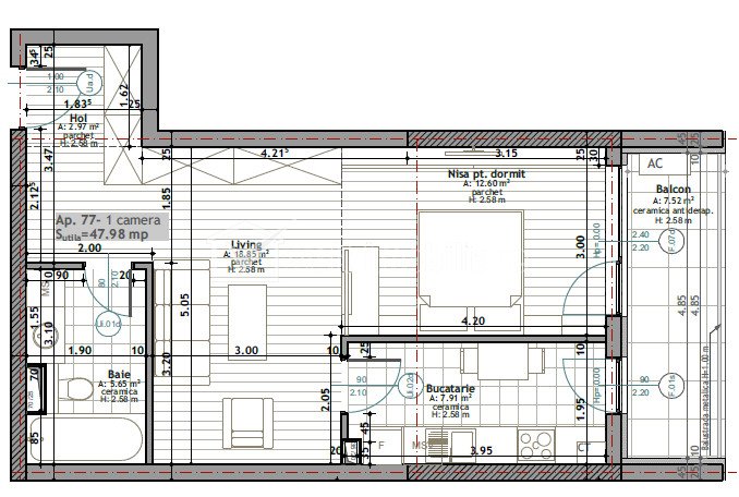 Characteristics Property type Apartment Rooms number 2 Kitchens number 1 Bathrooms number 1 Balconier number 1 Parking yes Build area 66 m2 Ussefull area 48 sqm Divided Semidecomandat Comfort 1 Floor 6/14 Build with Brick Apartment Description We offer for sale a special apartment with 2 rooms, located in the Zorilor district, intermediate floor, with a usable area of 48 sqm, total of 55 sqm. The apartment for sale is divided into an open space hall with access to the living room, bedroom, spacious bathroom, balcony. It was modernly finished with parquet, tiles, modern tiles, double glazed windows and a metal door. The building is one of the highest standards, set back from the main traffic artery, and the house has orientation. Parking and box office available. Due to the special location, close to means of transport, shops, UMF, USAMV, the Faculty of Architecture, the Technical University, with easy access to the city center, we strongly recommend this apartment! Ideal for housing or investment! The apartment is an ideal choice for those who want a comfortable and modern space, in an area of interest! For more information and to schedule a viewing, please contact us! Property ID - P45218 Utilities, Finishings General utilities: Electricity, Water, Gaz, Drain Views number: 732 Updated: 2025-01-16 08:55:43