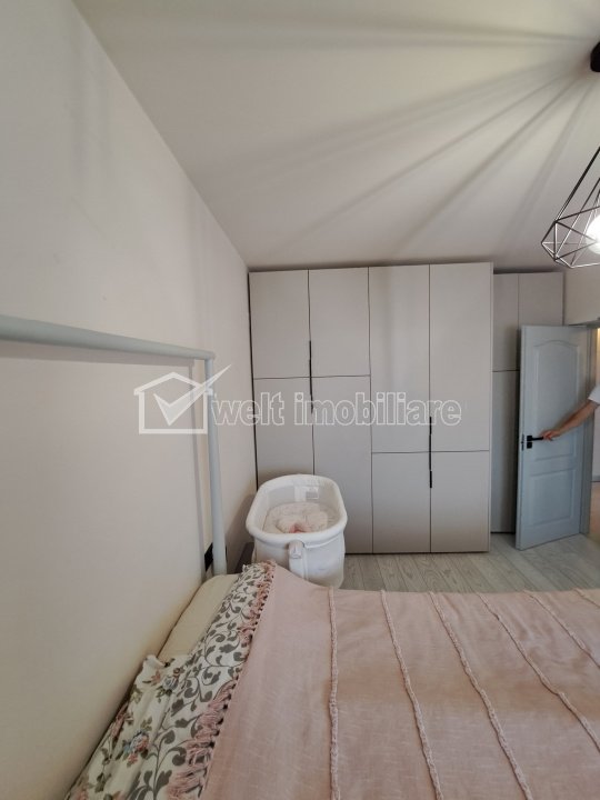 Characteristics Property type Apartment Rooms number 2 Kitchens number 1 Bathrooms number 1 Balconier number 1 Parking yes Build area 67 m2 Ussefull area 56 sqm Divided Semidecomandat Floor 3/3 Build with Concrete Build year 2018 Apartment Description Welt Imobiliare offers for purchase a semi-detached apartment with a usable area of 56 sq m, located on Porii Street in Floresti. This is located on the third floor of a block of flats consisting of G+3 with south orientation and is divided as follows: => Kitchen; => Hall with storage spaces; => Bathroom; => Two bedrooms; => Corner balcony with an area of 8 sq m. Separately, one or two parking spaces can be purchased at the price of 2000/space. This is sold furnished and equipped according to the presentation photos and the payment methods are various. For any details, questions or viewings, please contact us with confidence! Property ID: P47985 Property ID - P47985 Utilities, Finishings General utilities: Electricity, Water, Gaz, Drain, PhoneHeating system Heating, HeatersConditioning Air conditioningFinishings Parquet, Sandstone, WashableEquipment Gas meters Views number: 553 Updated: 2025-07-04 16:00:26