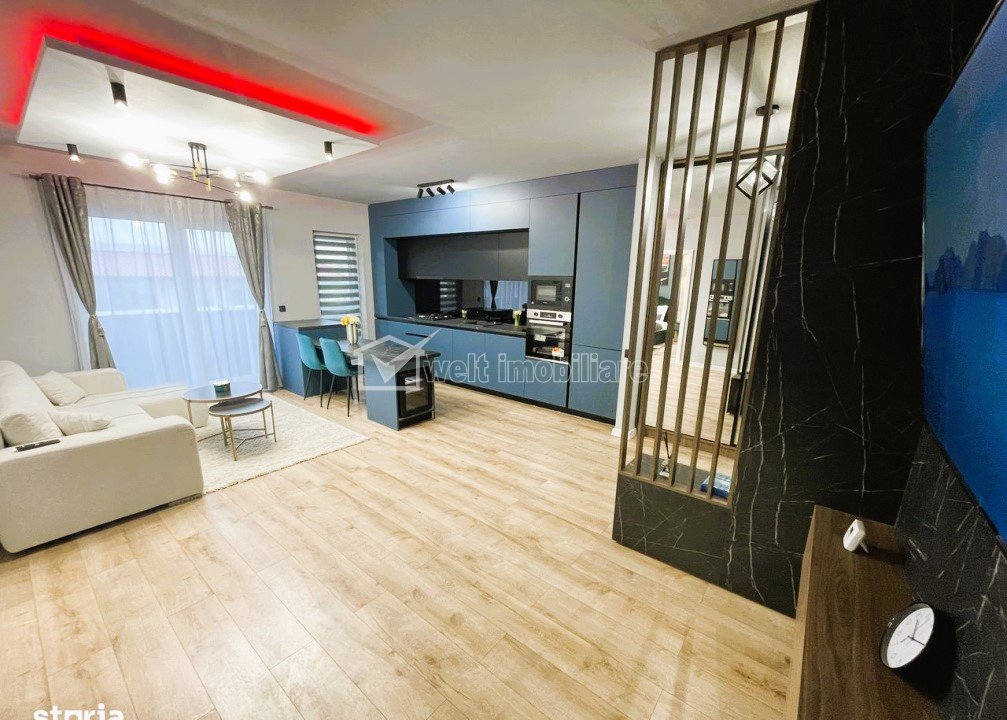 Characteristics Property type Apartment Rooms number 2 Kitchens number 1 Bathrooms number 1 Terraces No. 1 Parking yes Build area 60 m2 Ussefull area 50 sqm Divided Semidecomandat Floor 4/4 Build with Concrete Build year 2025 Apartment Description Welt Imobiliare offers for sale a 2-room apartment in Floresti, Eroilor area. The usable area of 50sqm is divided as follows: - bedroom - living room + kitchen - bathroom - hallway In addition to these, a 12sqm terrace is added. The apartment is delivered finished and furnished. Custom-made furniture, new appliances, under warranty. Thermal comfort is provided by its own central heating and underfloor heating. A parking space can be purchased with an individual CF, at the price of 7000 euros. For more details, please contact us with confidence! Property ID - P53557 Utilities, Finishings General utilities: Electricity, Water, DrainHeating system Heating, Floor HeatingFinishings Parquet, Sandstone, Faience, Washable, Interior doors Views number: 38 Updated: 2026-03-04 12:58:16
