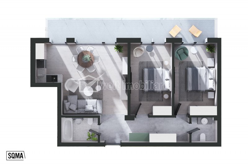 Cluj-Napoca, Centru 3 rooms • 71.72 sqm • 2 bathrooms • floor /23 • semidecomandatfinisat • nemobilat