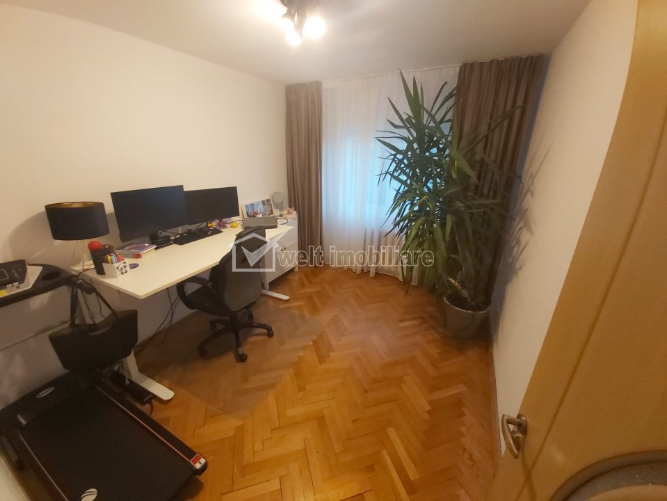 Characteristics Property type Apartment Rooms number 3 Kitchens number 1 Bathrooms number 2 Parking no Build area 80 m2 Ussefull area 72 sqm Divided Decomandat Comfort 1 Floor 4/4 Build year 1986 Apartment Description Detached 3-room apartment, located in the Gheorgheni neighborhood, close to the Center. Useful area of 64 sq m, plus two closed balconies (8 sq m), integrated into the rooms. Partitioning: living room, two bedrooms, kitchen with hallway, two bathrooms. It has a cellar, included in the rent and access to the dryer, for storage. At the moment the apartment has a parking space with a subscription from the City Hall. Good location – 10 minutes walk to Cipariu Square, bus stop in front of the building. Equipped with Daikin air conditioning, Viessmann central heating, double glazing. The apartment has a S-W orientation, is particularly bright and is in very good condition. Negotiable price. Property ID - P51166 Utilities, Finishings General utilities: Electricity, Water, Gaz, DrainHeating system Heating, HeatersFinishings Parquet, Sandstone, Washable Views number: 433 Updated: 2025-11-19 13:27:54