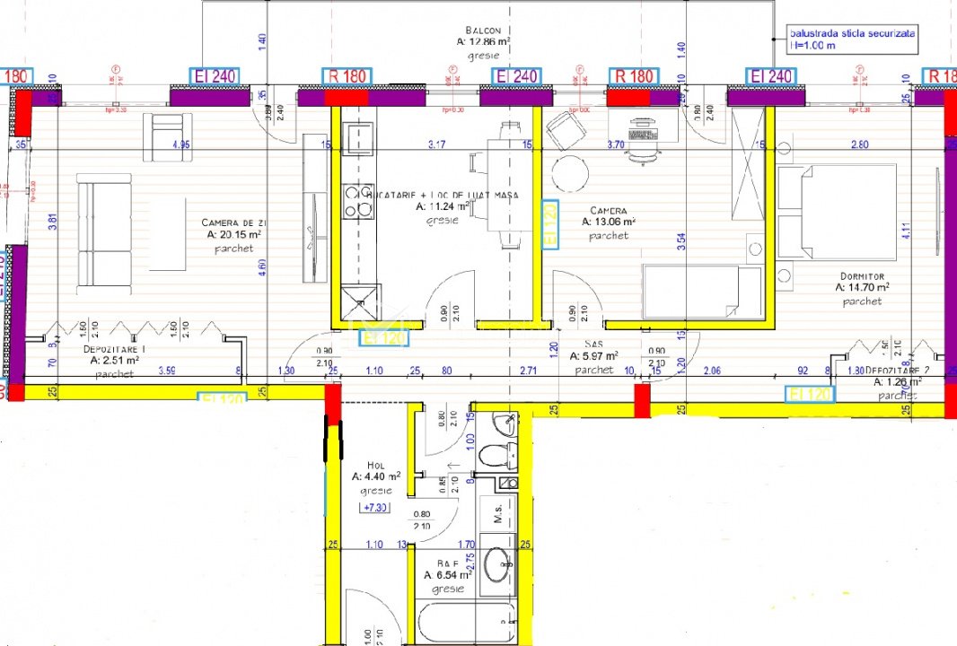Characteristics Property type Apartment Rooms number 3 Kitchens number 1 Bathrooms number 2 Balconier number 1 Garrages number 1 Parking yes Build area 96 m2 Ussefull area 79.83 sqm Divided Decomandat Comfort 1 Floor 3/5 Build with Brick Build year 2026 Apartment Description Welt Imobiliare offers for sale 3-room apartments in a new building, with estimated completion at the beginning of 2027, located in the Iris neighborhood, near the Railway Park and the future RIVUS project. The apartments have a usable area of 80 sq m, with separate partitioning, consisting of: living room, separate kitchen, 2 bedrooms, 2 bathrooms, 16 sq m terrace. The residential units are available on floors 1, 2, 3 and 4, in a building with a height regime of G+4F+Retired floor. The handover is made at the semi-finished stage, including: screed, a layer of putty, double-glazed windows, entrance door, underfloor heating, electrical and sanitary installations pulled into position. Underground parking space, with individual CF, at the price of 15,000 euros + VAT. Apartment price: 3000 euro/sqm + VAT. The area is in continuous development, with quick access to the future RIVUS mall and the Railway Park. For details and to schedule a viewing, we are at your disposal. Property ID - P52957 Utilities, Finishings General utilities: Electricity, Water, Gaz, Drain Views number: 34 Updated: 2026-02-02 22:06:51