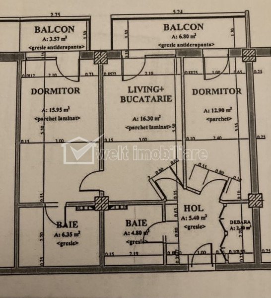 Apartment 3 rooms for sale in Cluj-napoca, zone Manastur Cluj-Napoca, Manastur 3 rooms • 64 sqm • 2 bathrooms • floor 2/5 • decomandatfinisat • mobilat complet sale price €105,000 + 7 + 4 Sold Characteristics Property type Apartment Rooms number 3 Kitchens number 1 Bathrooms number 2 Balconier number 2 Parking yes Build area 76 m2 Ussefull area 64 sqm Divided Decomandat Comfort 1 Floor 2/5 Build with Brick Build year 2008 Apartment Description Real estate Agency Welt Imobiliare is offering for sale apartment with 3 rooms, located in Cluj-napoca, zone Manastur. The apartment comfort 1 decomandat situated in floor 2 in a bloc with 5 floors, has 1 kitchen, 2 bathrooms , 2 balconies , parking.The apartment is finisat has parquet, sand stone, washable walls, heat station, gas counters. Among finishing there are: izolatii termice (bloc izolat termic), pereti (vopsea lavabila), podele (parchet, gresie), ferestre cu geam termopan (pvc), usa intrare (metal) Among equipment we are mentioning: alte spatii utile (debara), bucatarie (mobilata, utilata), contorizare (apometre, contor gaz), mobilat (complet), dotari imobil (interfon), electrocasnice (masina de spalat rufe, frigider, aragaz) Property ID - P25642 Utilities, Finishings General utilities: Electricity, Water, Gaz, DrainHeating system Heating, HeatersFinishings Parquet, Sandstone, WashableEquipment Gas meters Views number: 1662 Updated: 2023-09-15 17:17:25