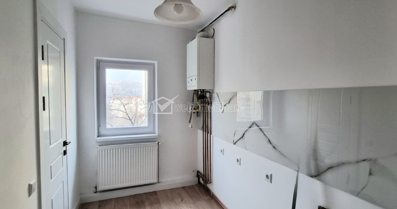 Characteristics Property type Apartment Rooms number 3 Kitchens number 1 Bathrooms number 2 Balconier number 1 Parking no Build area 90 m2 Ussefull area 65 sqm Divided Decomandat Comfort 1 Floor 4/10 Build with Brick Build year 1970 Apartment Description Welt Imobiliare offers for sale an apartment with 3 detached rooms with a usable area of 65 sqm on the 4th floor of a 10-level building. It is located in the Manastur neighborhood, Piata Flora area, just 5 minutes from public transport, at a Vivo Center station, shops, banks, green spaces and other points of interest in the area. The apartment is sold ultra-finished, being compartmentalized as follows: kitchen, living room, 2 bedrooms, hall, 2 bathrooms, storage space and a 6 sqm balcony. For your comfort, it also has a speaker in the basement. If we have piqued your interest with this property, please feel free to contact us! The Welt Immobiliare team. Property ID - P40394 Utilities, Finishings General utilities: Electricity, Water, Gaz, Drain, TV Cable, PhoneHeating system Heating, HeatersFinishings Parquet, Sandstone, Faience, Washable, Interior doorsEquipment Gas meters Views number: 1968 Updated: 2025-01-23 14:16:58