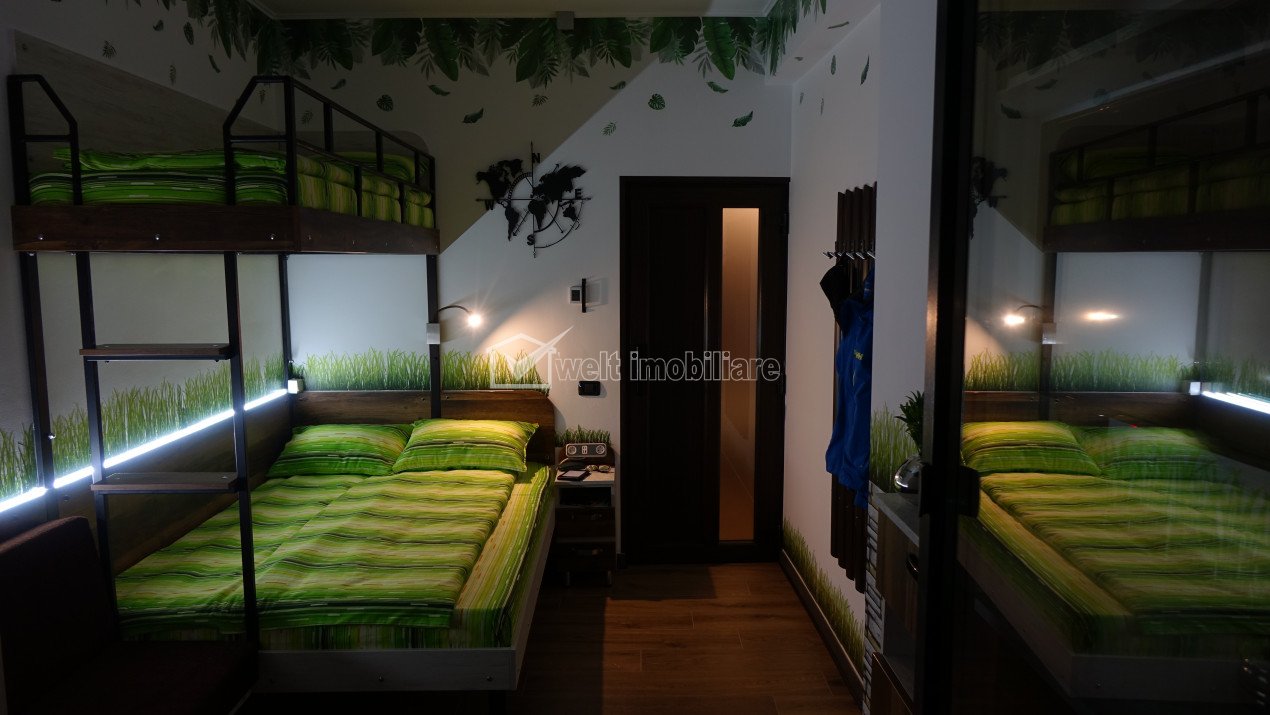 Characteristics Property type Apartment Rooms number 3 Kitchens number 1 Bathrooms number 2 Terraces No. 1 Parking yes Build area 93 m2 Ussefull area 78 sqm Divided Semidecomandat Floor 6/6 Build year 2024 Apartment Description The penthouse for sale offers a unique view of the city. Located on the 6th floor (retreat floor) of this brand new residential complex, it has a total area of 78 sqm and consists of 3 bedrooms, 2 bathrooms and a generous 13.5 sqm terrace that stretches the entire length of the apartment. The location offers the perfect balance between the greenery, tranquility and fresh air surrounding the residential complex, with forests to the south, east and west, and the urban convenience represented by the mall in the valley, which you can reach in just a few minutes on foot. On the ground floor of the building there are functional commercial spaces. The living room is a welcoming and bright space, perfect for relaxation and socializing, and includes a massive 8-person dining table, a 5-seater Columbus Crown sofa with Dolphin sleeping mechanism, a chest of drawers, a coffee table and a 2-person desk with a high-performance computer and 5.1 audio system. The computer can be used with a 40" Samsung FullHD 100 cm monitor (for work, browsing and gaming) or can play movies, music, etc. on the main TV in the living room (a 55" Samsung 4K UltraHD 140 cm. The generous terrace with access from both the living room and each bedroom is the perfect place to enjoy a snack, a bottle of wine or a cup of coffee, and offers you truly panoramic views, from Cluj-Napoca stretching to the east, and the sunrise, to Floresti, the mountains and the sunset to the west. The open-space kitchen with printed glass panels is fully equipped with brand-new appliances, which give you the opportunity to prepare and enjoy your favorite meals in a stylish and functional environment. It includes a refrigerator with freezer, a professional Samsung 8 kg washing machine with built-in dryer, a built-in Whirlpool microwave oven, a gas hob and another on induction, stainless steel hood and a high-performance electric oven. The bedrooms are arranged with attention to detail to ensure peaceful rest and complete comfort. Also in the bedrooms you will find bedside tables with sockets, high-speed USB chargers, micro-USB and Type-C, lamps and 100 cm FullHD televisions, spacious hangers and a safe. All doors and windows to the terrace have 3 rows of glass and the most efficient PVC joinery for maximum thermal and sound insulation For your car you have secure access to private parking in the underground garage, just a few steps from the stairs and elevator. Property ID - P46046 Utilities, Finishings General utilities: Electricity, Water, Gaz, DrainHeating system Heating, Floor HeatingConditioning Air conditioning Views number: 3256 Updated: 2025-12-03 14:12:49