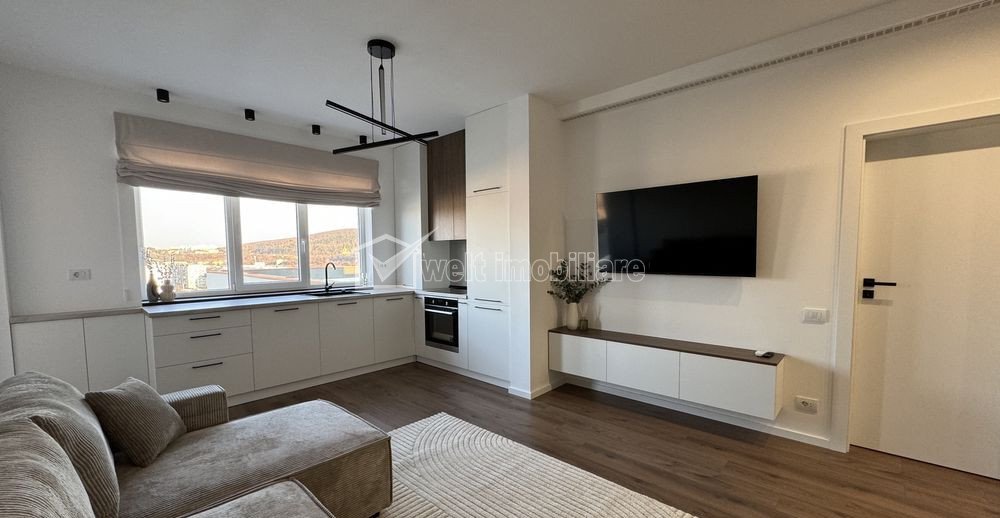 Characteristics Property type Apartment Rooms number 3 Kitchens number 1 Bathrooms number 1 Balconier number 1 Parking yes Build area 76 m2 Ussefull area 63.4 sqm Divided Decomandat Floor 9/9 Build with Brick Build year 2024 Apartment Description Welt Imobiliare offers for sale a 3-room apartment, located on Avram Iancu Street, in Floresti. Nearby is the Vivo shopping complex, and public transportation. The apartment is divided as follows: - 2 bedrooms; - living room + open space kitchen; -1 bathroom; - balcony and has a superb panorama. The amenities are: - LG Smart TV 139 cm - Gree 18000 BTW air conditioning - Electrolux oven - Electrolux vitroceramic hob - BEKO 60cm dishwasher - BEKO built-in refrigerator - Whirlpool built-in hood - Gorenje 8 kg washing machine - Gorenje 8 kg dryer. The apartment is delivered furnished and equipped, as seen in the presentation photos, everything being new and under warranty. A parking space is also included in the displayed price. For further details, contact us with confidence! Property ID - P46957 Utilities, Finishings General utilities: Electricity, Water, Gaz, DrainHeating system Heating, Floor HeatingConditioning Air conditioningFinishings Parquet, Sandstone, Faience, Washable Views number: 1307 Updated: 2025-11-12 17:16:34