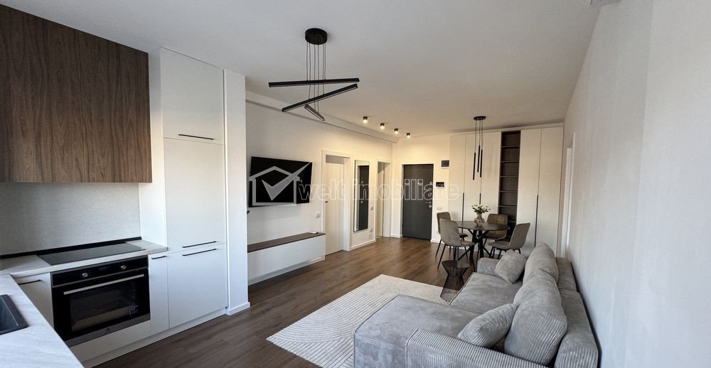 Apartment 3 rooms for sale in Floresti Floresti, zone Avram Iancu 3 rooms • 63.4 sqm • 1 bathroom • floor 9/9 • decomandatfinisat • mobilat complet sale price €186,000 + 7 + 4 Characteristics Property type Apartment Rooms number 3 Kitchens number 1 Bathrooms number 1 Balconier number 1 Parking yes Build area 76 m2 Ussefull area 63.4 sqm Divided Decomandat Floor 9/9 Build with Brick Build year 2024 Apartment Description Welt Imobiliare offers for sale a 3-room apartment, located on Avram Iancu Street, in Floresti. Nearby is the Vivo shopping complex, and public transportation. The apartment is divided as follows: - 2 bedrooms; - living room + open space kitchen; -1 bathroom; - balcony and has a superb panorama. The amenities are: - LG Smart TV 139 cm - Gree 18000 BTW air conditioning - Electrolux oven - Electrolux vitroceramic hob - BEKO 60cm dishwasher - BEKO built-in refrigerator - Whirlpool built-in hood - Gorenje 8 kg washing machine - Gorenje 8 kg dryer. The apartment is delivered furnished and equipped, as seen in the presentation photos, everything being new and under warranty. A parking space is also included in the displayed price. For further details, contact us with confidence! Property ID - P46957 Utilities, Finishings General utilities: Electricity, Water, Gaz, DrainHeating system Heating, Floor HeatingConditioning Air conditioningFinishings Parquet, Sandstone, Faience, Washable Views number: 1307 Updated: 2025-11-12 17:16:34
