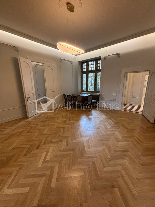 + 37 + 34 Sold Exclusivity Characteristics Property type Apartment Rooms number 4 Kitchens number 1 Bathrooms number 2 Balconier number 1 Terraces No. 1 Parking no Build area 183 m2 Ussefull area 153 sqm Divided Semidecomandat Comfort Marit Floor 1/3 Build with Brick Build year 1906 Apartment Description An architectural gem in the heart of the city! We present you a unique 4-room apartment, located in a historic building built in 1906, located in the ultra-central area of the city. The property impresses with the successful combination of the charm of classical architecture and the elegance of contemporary finishes. The high rooms (almost 4 m), the generous space (153 sq m) and the functional partitioning make this apartment an ideal choice for living or investment. The configuration includes: bright living room, 3 spacious bedrooms, separate kitchen, 2 fully equipped bathrooms, pantry, storage space, technical room, cellar, balcony and a terrace overlooking the inner courtyard. The property is recently renovated and benefits from high-quality finishes: premium parquet, modern tiles and floor tiles, electric blinds, carefully selected sanitary ware, smart lighting system and mixed heating (floor + radiators). Easy access to all points of interest in the city: universities, restaurants, public institutions, means of transportation. Located just 5 minutes from Central Park and Unirii Square. Suitable for: personal residence, office activity, notary office, hotel or long-term rental. Viewing possible from Monday to Sunday. Negotiable price! Property ID - P46134 Utilities, Finishings General utilities: Electricity, Water, Gaz, DrainHeating system Heating, Heaters, Floor HeatingFinishings Parquet, Sandstone, Faience, Interior doors Views number: 2100 Updated: 2025-09-15 18:53:32