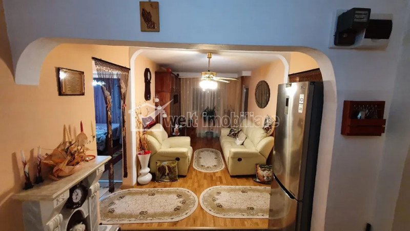 Characteristics Property type Apartment Rooms number 4 Kitchens number 2 Bathrooms number 2 Balconier number 2 Parking yes Build area 84 m2 Ussefull area 75 sqm Divided Semidecomandat Comfort 1 Floor 3/4 Build with Brick Apartment Description Real estate Agency Welt Imobiliare is offering for sale apartment with 4 rooms, located in Cluj-napoca, zone Zorilor. The apartment comfort 1 semidecomandat situated in floor 3 in a bloc with 4 floors, has 2 kitchens, 2 bathrooms , 2 balconies , parking.The apartment is finisat has parquet, sand stone, faience, washable walls. Among finishing there are: pereti (vopsea lavabila, faianta), podele (parchet, gresie), ferestre cu geam termopan (pvc), usa intrare (metal) Among equipment we are mentioning: alte spatii utile (debara), bucatarie (mobilata, utilata), mobilat (complet), dotari imobil (interfon), electrocasnice (masina de spalat rufe, frigider, aragaz) Property ID - P27408 Utilities, Finishings General utilities: Electricity, Water, Gaz, DrainHeating system Imobil heating, HeatersFinishings Parquet, Sandstone, Faience, Washable Views number: 2725 Updated: 2023-07-13 17:33:25