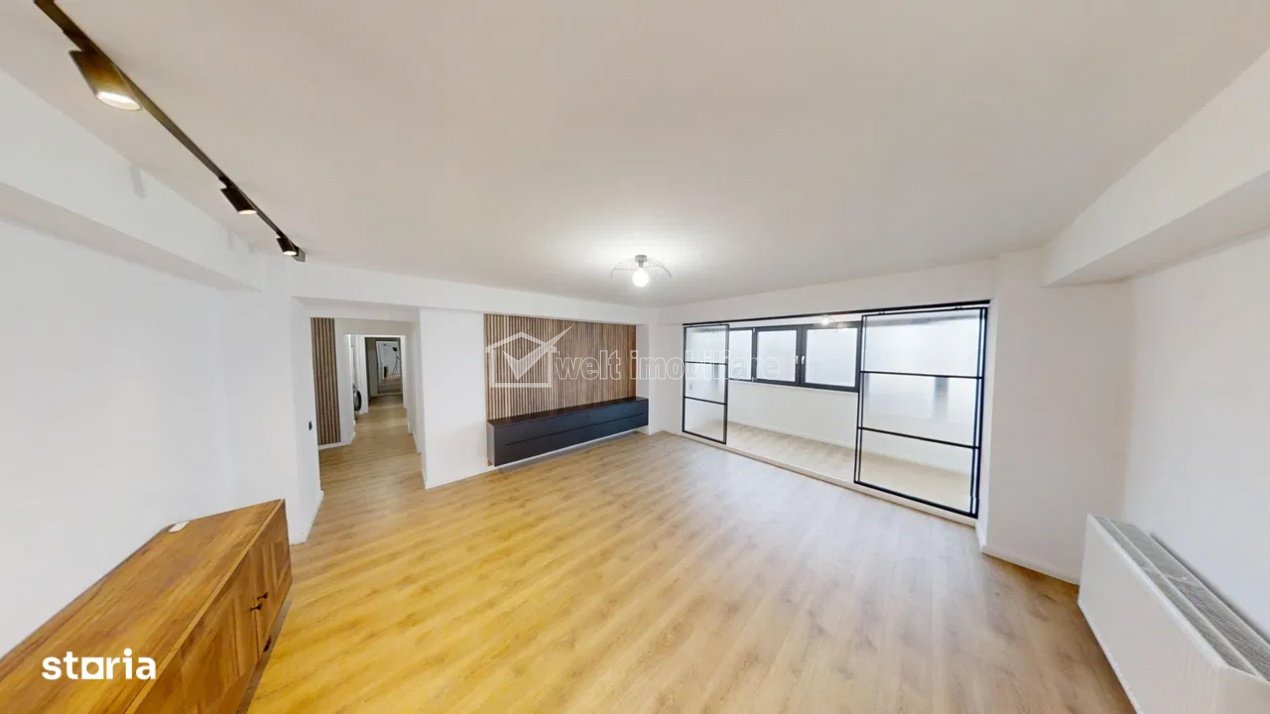 + 17 + 14 Characteristics Property type Apartment Rooms number 4 Kitchens number 1 Bathrooms number 1 Balconier number 1 Parking no Build area 132 m2 Ussefull area 110 sqm Divided Decomandat Comfort 1 Floor 8/9 Build with Concrete Apartment Description Welt Imobiliare offers for sale a 4-room apartment in the Zorilor neighborhood. The usable area of 110sqm is divided as follows: - bedroom with dressing room and bathroom - 2 mirrored bedrooms - spacious living room - kitchen - bathroom - closet - hallway - two closed balconies The apartment was recently renovated, has new furniture and appliances. Partially furnished. New electrical and sanitary installations. Shuco aluminum door, with intelligent access system via fingerprint and code. Thermal comfort is achieved through its own central heating and radiators. It has air conditioning. The building is located near public transportation. A garage is also included in the price of the apartment. The block has an elevator and a video surveillance system. For more details, please contact us with confidence! Property ID - P49309 Utilities, Finishings General utilities: Electricity, Water, DrainHeating system Heating, HeatersConditioning Air conditioningFinishings Parquet, Sandstone, Faience, Washable, Interior doors Views number: 1689 Updated: 2025-10-14 14:20:48