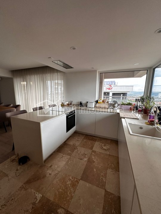 + 13 + 10 Characteristics Property type Penthouse Rooms number 5 Kitchens number 1 Bathrooms number 3 Terraces No. 2 Parking yes Build area 450 m2 Ussefull area 210 sqm Divided Decomandat Comfort Marit Floor 6/6 Build with Brick Build year 2014 Apartment Description Welt Imobiliare presents a penthouse in a new block, completed in 2014, with an internal staircase. On the first level of this luxury penthouse, you are greeted by a generous, well-structured space, where comfort combines with modern style. Here are 4 rooms, including the elegant bedrooms, equipped with dressing rooms that offer generous storage space The 3 bathrooms, finished in marble, bring an air of refinement and functionality. The spacious terraces create ideal places for relaxation, allowing you to enjoy the fresh air and natural light every day. Upstairs, a relaxation sanctuary awaits you, where the fitness room invites you to maintain your active lifestyle in the comfort of your own home. Also, another terrace, with a special panoramic view, transforms this space into a perfect place to relax and enjoy the beauties of the city, whether you enjoy a morning coffee or enjoy the spectacular sunsets. Usable area: 210 sqm Built area: 450 sqm Rooms: 5 rooms, of which 3 bedrooms, each with its own dressing room Bathrooms: 3 bathrooms, two of which are on the first level, and the third on the second floor Kitchen: spacious and fully equipped Outdoor spaces and views: 2 terraces of 240 sqm, one of them with a 360-degree panoramic view This exceptional penthouse, with an elegant design and unique view, is created for a relaxing and well-deserved lifestyle! For additional details, or viewing requests, do not hesitate to contact us. Property ID - P49255 Utilities, Finishings General utilities: Electricity, Water, Gaz, DrainHeating system Imobil heating, HeatersConditioning Air conditioningFinishings Parquet, Faience, Washable Views number: 888 Updated: 2025-10-20 12:41:51