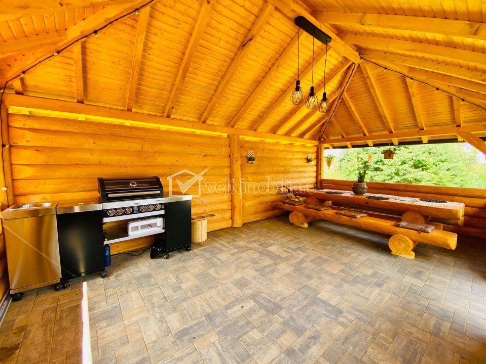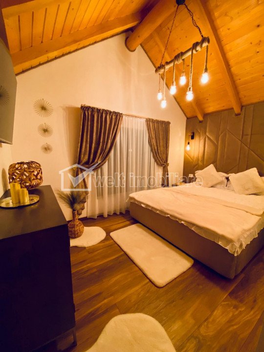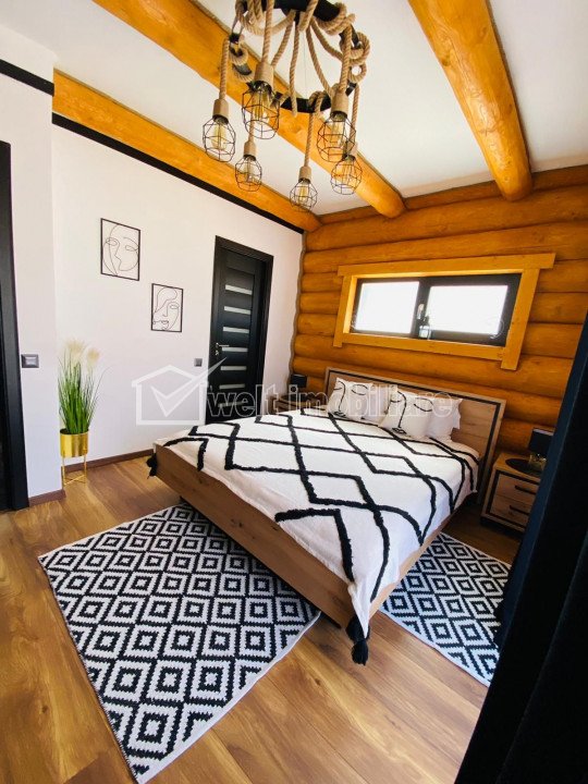 Characteristics Property type Holiday houses Rooms number 4 Kitchens number 1 Bathrooms number 4 Balconier number 1 Terraces No. 2 Terraces area 30.00 mp Parking yes Cellar no Garden yes Ussefull area 180 sqm Build area 225 sqm Land area 1500 m2 Front 25 m Floor 1 Struct. strength Wood Build year 2022 Finishings: Parquet