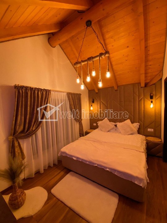 Holiday houses for sale in Rasca, zone Centru Rasca, Centru 4 rooms • 180 sqm • 1500 m2 land sale price negotiable €425,000 + 26 + 23 Sold Characteristics Property type Holiday houses Rooms number 4 Kitchens number 1 Bathrooms number 4 Balconier number 1 Terraces No. 2 Terraces area 30.00 mp Parking yes Cellar no Garden yes Ussefull area 180 sqm Build area 225 sqm Land area 1500 m2 Front 25 m Floor 1 Struct. strength Wood Build year 2022 Finishings: Parquet