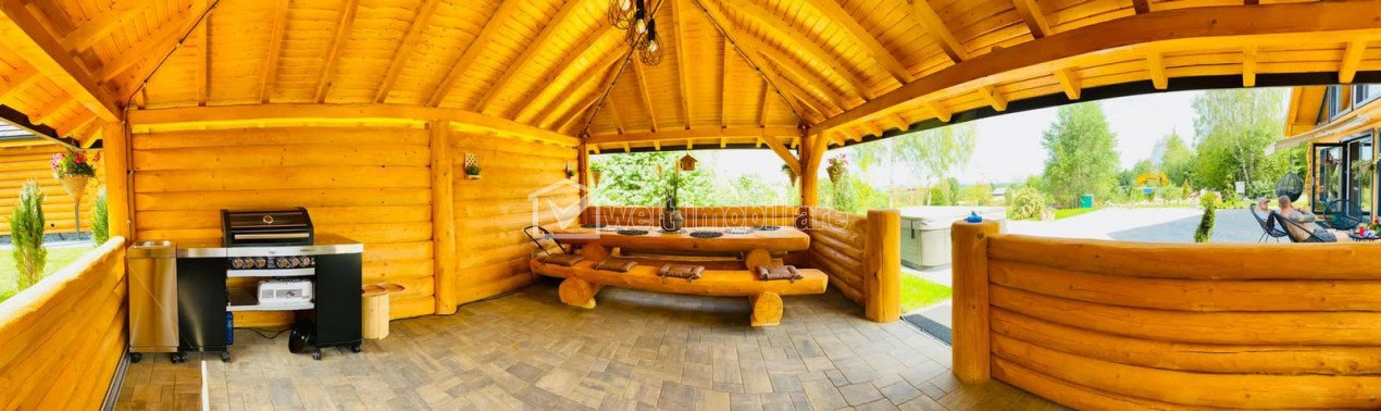 + 26 + 23 Sold Characteristics Property type Holiday houses Rooms number 4 Kitchens number 1 Bathrooms number 4 Balconier number 1 Terraces No. 2 Terraces area 30.00 mp Parking yes Cellar no Garden yes Ussefull area 180 sqm Build area 225 sqm Land area 1500 m2 Front 25 m Floor 1 Struct. strength Wood Build year 2022 Finishings: Parquet