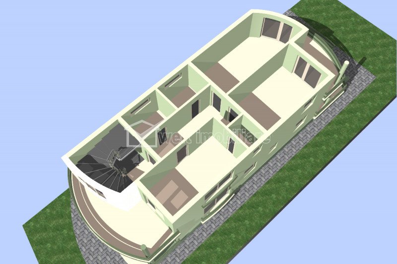 Characteristics Property type House Rooms number 12 Kitchens number 1 Bathrooms number 3 Parking yes Cellar yes Garden yes Ussefull area 298.8 sqm Build area 113 sqm Land area 383 m2 Front 12 m Floor 1 Struct. strength Brick Build year 2008 Finishings: Parquet, Sandstone, Faience, TV