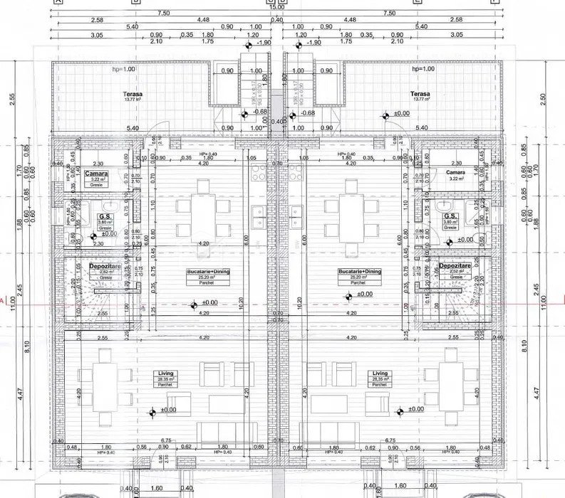 House 4 rooms for sale in Chinteni Chinteni 4 rooms • 123 sqm • 654 m2 land sale price negotiable €149,000 + 14 + 11 Sold Characteristics Property type House Imobil type Two-ply Rooms number 4 Kitchens number 1 Bathrooms number 2 Parking yes Cellar no Garden yes Ussefull area 123 sqm Build area 160 sqm Land area 654 m2 Front 11 m Floor 1 Struct. strength Brick Build year 2022
