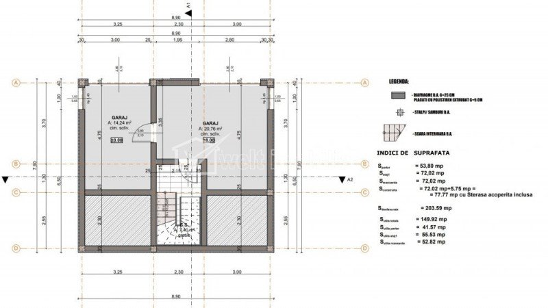 Characteristics Property type House Rooms number 4 Kitchens number 1 Bathrooms number 3 Garrages number 2 Parking no Cellar no Garden no Ussefull area 150 sqm Build area 180 sqm Land area 360 m2 Front 20 m Floor 1 Build year 2019 Finishings: TV