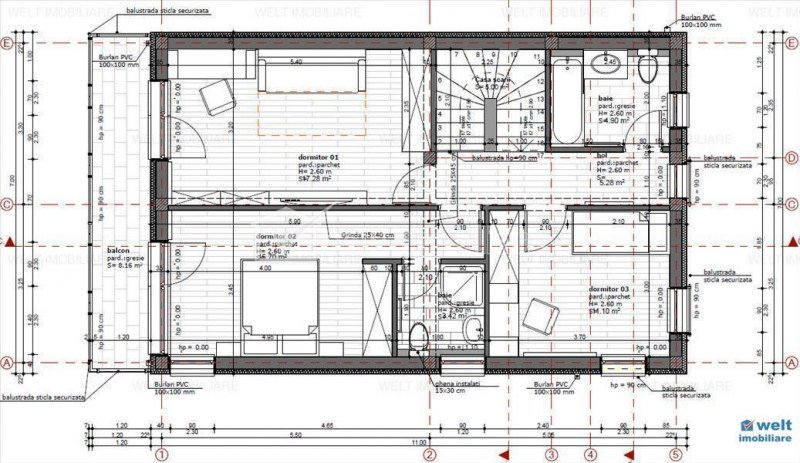 Characteristics Property type House Rooms number 4 Kitchens number 1 Bathrooms number 3 Parking yes Cellar no Garden yes Ussefull area 120 sqm Build area 142 sqm Land area 250 m2 Front 16 m Floor 1 Struct. strength Brick Build year 2017 Finishings: Stare Buna