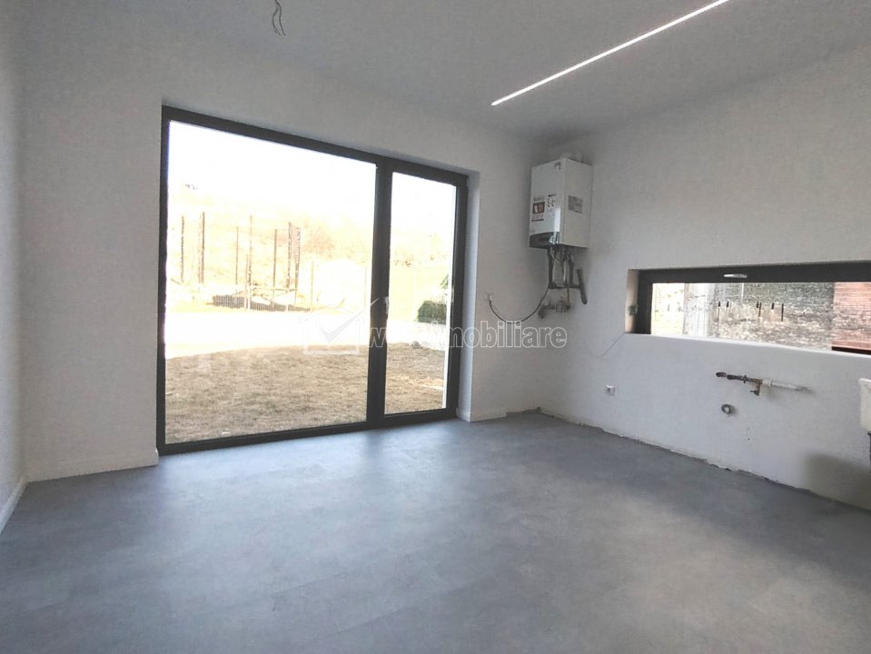 Characteristics Property type House Imobil type Two-ply Rooms number 4 Kitchens number 1 Bathrooms number 2 Terraces No. 2 Terraces area 2.00 mp Garrages number 1 Parking yes Cellar no Garden no Ussefull area 120 sqm Build area 168 sqm Land area 240 m2 Front 8 m Floor 1 Struct. strength Brick Build year 2025 Finishings: Parquet, Sandstone, Faience, Interior doors, TV