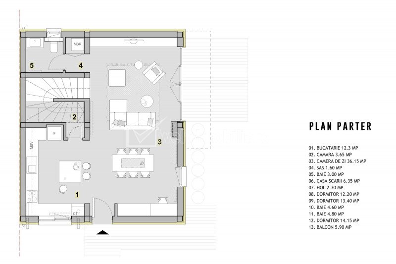 + 9 + 6 Sold Characteristics Property type House Imobil type Two-ply Rooms number 4 Kitchens number 1 Bathrooms number 3 Parking yes Cellar no Garden no Ussefull area 120 sqm Build area 144 sqm Land area 500 m2 Front 15 m Floor 1 Build year 2018 Finishings: La gri