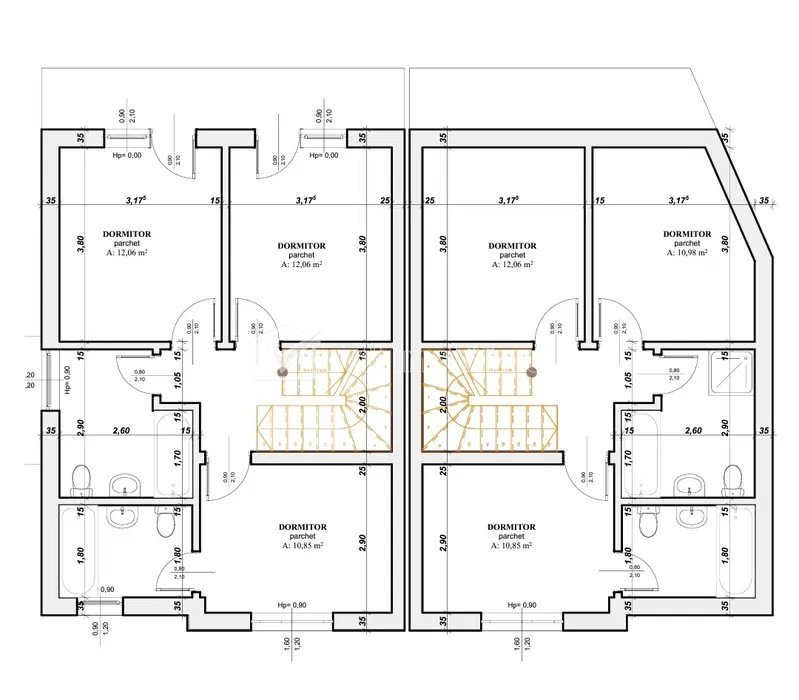 Characteristics Property type House Imobil type Two-ply Rooms number 4 Kitchens number 1 Bathrooms number 3 Parking yes Cellar no Garden yes Ussefull area 103.6 sqm Build area 124 sqm Land area 280 m2 Floor 1 Struct. strength Brick Build year 2022