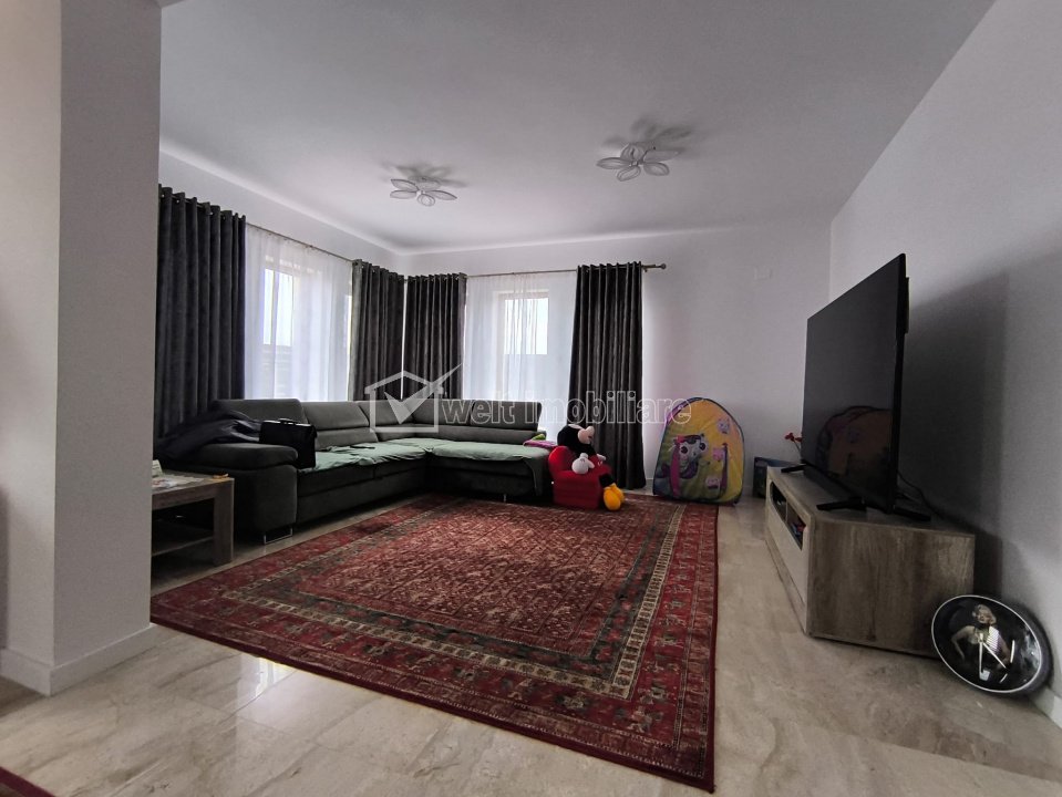 House 5 rooms for sale in Apahida Apahida 5 rooms • 120 sqm • 325 m2 landmobilat partial sale price negotiable €303,000 + 25 + 22 Characteristics Property type House Rooms number 5 Kitchens number 1 Bathrooms number 2 Balconier number 1 Terraces No. 2 Terraces area 60.00 mp Parking yes Cellar no Garden no Ussefull area 120 sqm Build area 144 sqm Land area 325 m2 Front 15 m Floor 1 Struct. strength Brick Build year 2023 Finishings: Parquet, Sandstone, Faience, Interior doors