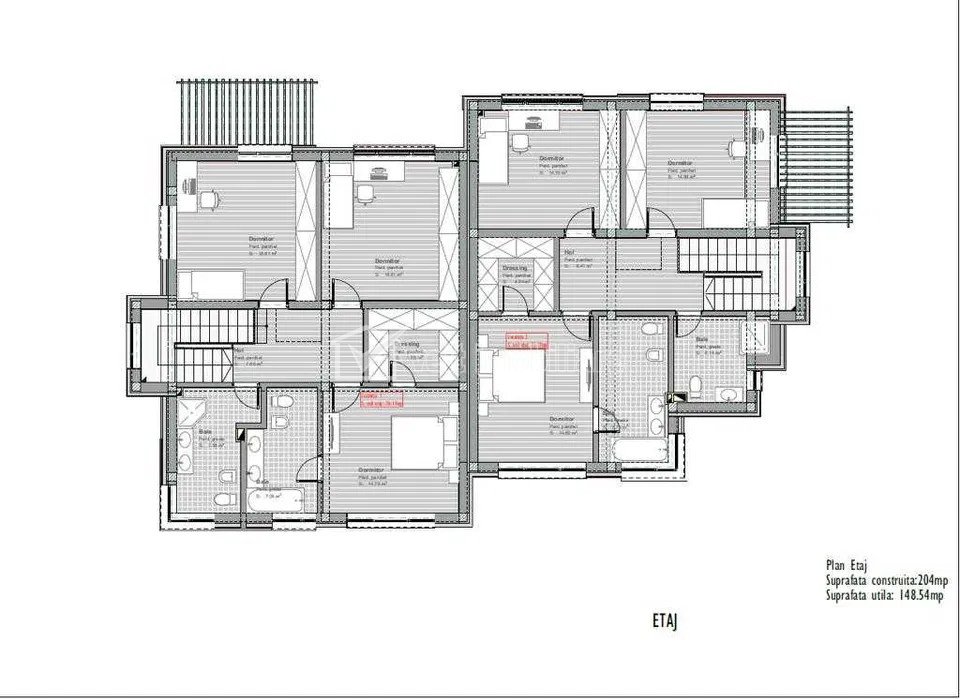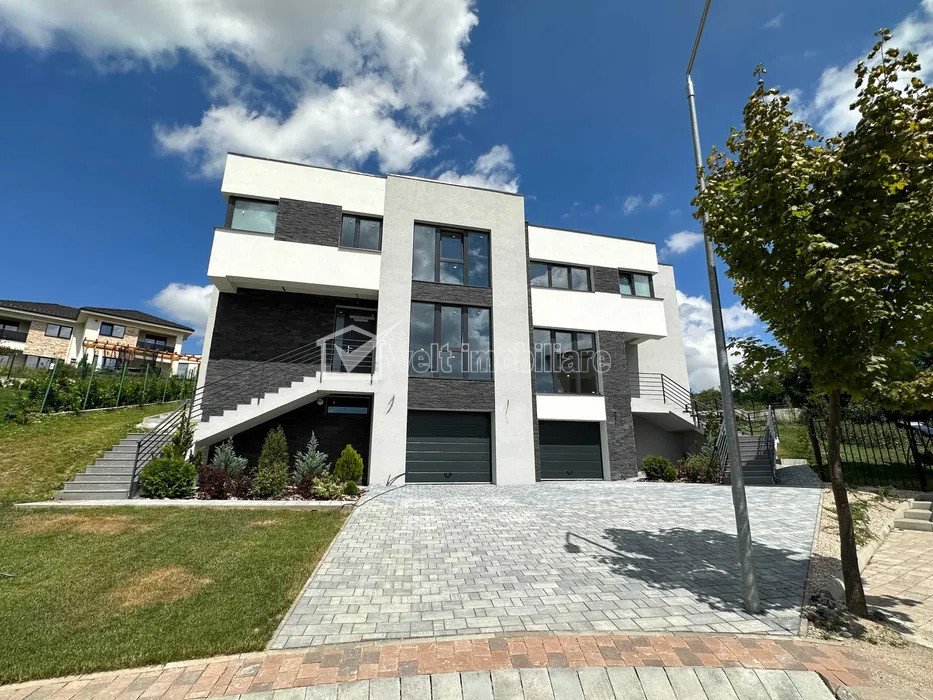 Characteristics Property type House Imobil type Two-ply Rooms number 5 Kitchens number 1 Bathrooms number 3 Garrages number 1 Parking no Cellar no Garden yes Ussefull area 180 sqm Build area 216 sqm Land area 450 m2 Floor 1 Struct. strength Brick Build year 2020 Finishings: Interior doors