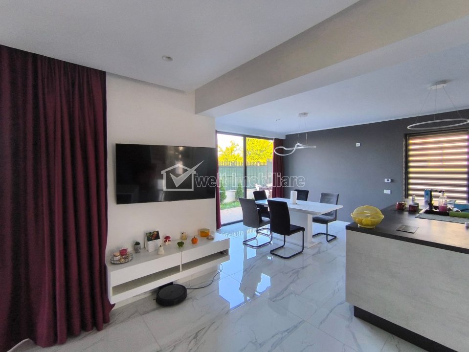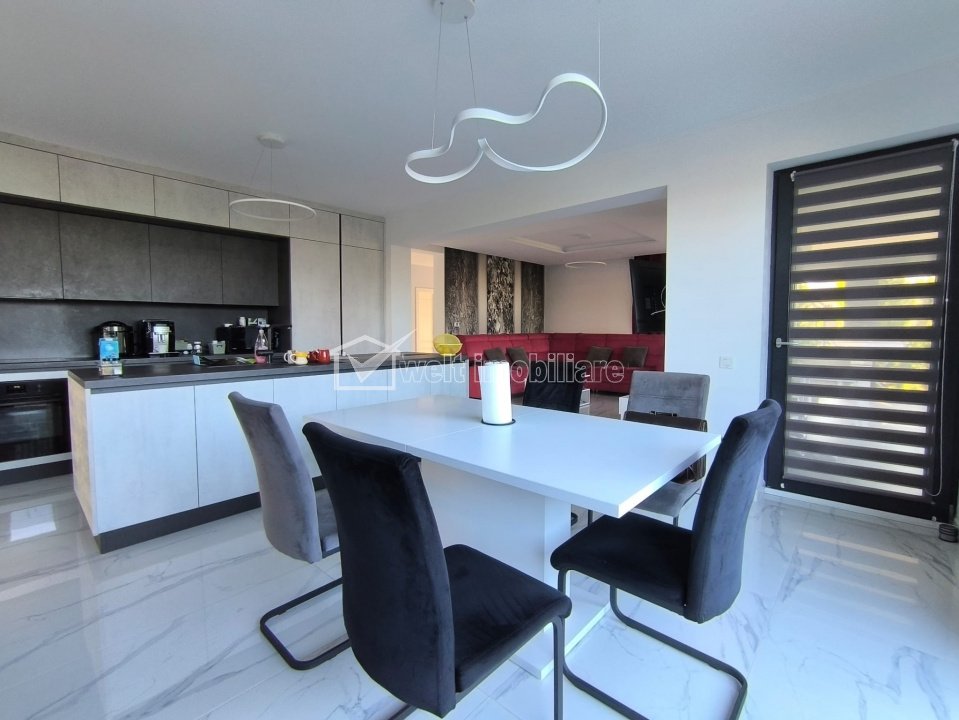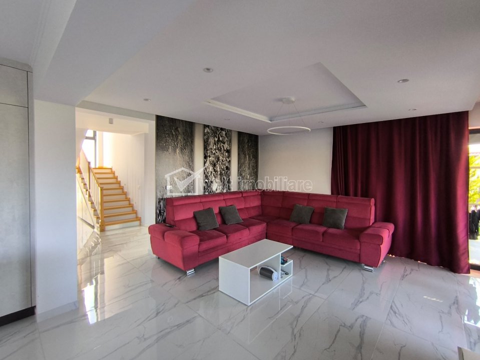 Characteristics Property type House Rooms number 5 Kitchens number 1 Bathrooms number 2 Balconier number 1 Terraces No. 2 Terraces area 120.00 mp Garrages number 1 Parking yes Cellar no Garden no Ussefull area 222 sqm Land area 512 m2 Front 25 m Floor 1 Struct. strength Brick Build year 2022 Finishings: Parquet, Sandstone, Faience, Interior doors