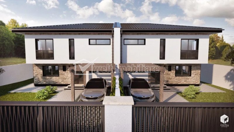 Characteristics Property type House Imobil type Two-ply Rooms number 5 Kitchens number 1 Bathrooms number 3 Parking yes Cellar no Garden yes Ussefull area 143 sqm Build area 180 sqm Land area 450 m2 Front 14 m Floor 1 Struct. strength Brick Build year 2020
