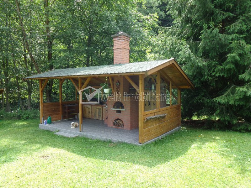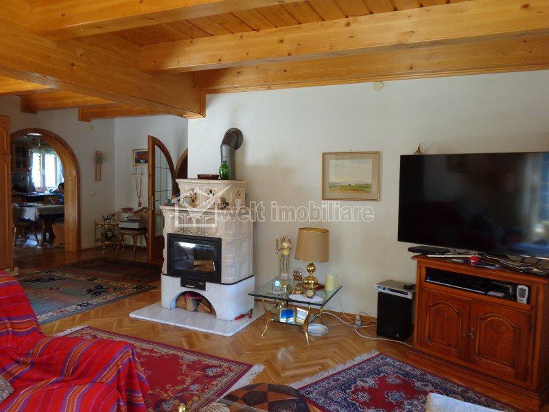 Characteristics Property type House Rooms number 6 Kitchens number 3 Bathrooms number 4 Balconier number 2 Terraces No. 2 Terraces area 66.50 mp Garrages number 2 Parking yes Cellar yes Garden yes Ussefull area 336 sqm Build area 420 sqm Land area 3500 m2 Front 60 m Struct. strength Wood Build year 2000 Finishings: Parquet