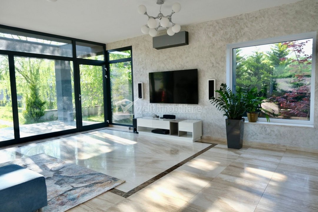Characteristics Property type House Rooms number 6 Kitchens number 1 Bathrooms number 2 Balconier number 2 Terraces No. 1 Terraces area 80.00 mp Parking yes Cellar no Garden yes Ussefull area 208 sqm Build area 249 sqm Land area 500 m2 Front 25 m Floor 1 Struct. strength Brick Build year 2016 Finishings: Parquet, Sandstone, Faience, Interior doors