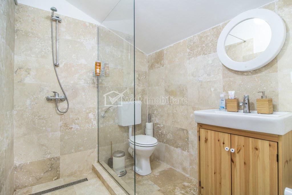 Characteristics Property type House Imobil type Two-ply Rooms number 6 Kitchens number 1 Bathrooms number 5 Balconier number 2 Terraces No. 1 Terraces area 15.00 mp Parking yes Cellar no Garden no Ussefull area 215 sqm Build area 245 sqm Land area 265 m2 Front 9 m Floor 1 Struct. strength Brick Build year 2016 Finishings: Parquet, Sandstone, Faience, Interior doors, TV