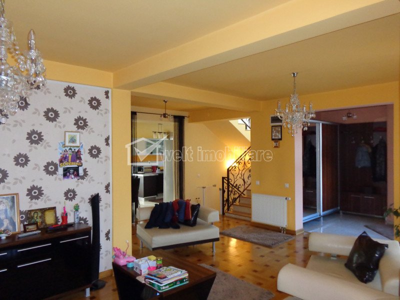 House 6 rooms for sale in Cluj-napoca, zone Gruia Cluj-Napoca, Gruia 6 rooms • 270 sqm • 431 m2 landmobilat lux sale price negotiable €449,500 + 21 + 18 Sold Characteristics Property type House Rooms number 6 Kitchens number 1 Bathrooms number 2 Garrages number 2 Parking yes Cellar yes Garden yes Ussefull area 270 sqm Build area 314 sqm Land area 431 m2 Front 22 m Floor 1 Struct. strength Concrete Build year 2009 Finishings: Parquet, Sandstone, Faience
