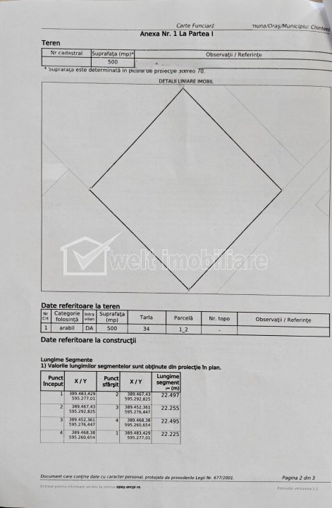 Characteristics Imobil type Intravilan land Land for civil construction Area 500 sqm Front 22 m Front no. 2 Utilities Utilities near, Water, Drain Views number: 42 Updated: 2026-03-04 14:47:41
