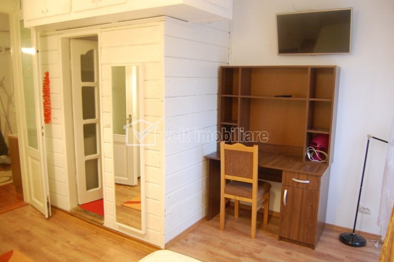 Apartament 1 camera, 32 mp, mobilat si utilat, vis-a-vis de UMF,Centru Cluj-Napoca, Centru 1 camera • 32 m2 • 1 baie • etaj 1/1 • semidecomandatfinisat • mobilat complet pret vanzare negociabil 79.500 € + 6 + 3 Vandut Caracteristici Tip locuinta Apartament Tip imobil bloc de apartamente Numar camere 1 Numar bucatarii 1 Numar bai 1 Numar balcoane 1 Parcare nu Supr. construita 36 m2 Suprafata utila 32 m2 Compartimentare Semidecomandat Confort 1 Etaj 1/1 Construit cu Caramida An constructie 1980 Disponibilitate imediata Descrierea Apartamentului Welt Imobiliare va ofera spre achizitie apartament semidecomandat cu 1 camera la 10 m de UMF, in centrul orasului Cluj Napoca. Apartamentul are 32 de mp (balconul nu e inclus in acesti 32mp), este situat la unicul etaj al unei cladiri din centrul Clujului, vizavi de UMF, langa Banca Transilvania. Se vinde finisat, cu mobila si dotarile existente, cu centrala termica (revizuire actualizata in ianuarie 2020), balcon refacut integral in 2018, geamuri cu tamplarie PVC, usa metalica la intrare, frigider cu congelator nou (achizitionat in noiembrie 2019), masina de spalat, plita pe gaz etc. Finisarile si dotarile au fost facute in perioada 2017 - 2019. Apartamentul este inchiriat, de 4 ani aceleiasi persoane, studenta la UMF. Se poate prelua apartamentul cu tot cu chiriasa. Pentru mai multe informatii nu ezitati sa ne contactati. ID Proprietate - P27735 Utilitati, Finisaje Utilitati generale: Electricitate, Apa, Gaz, CanalizareSistem de incalzire Centrala termica, Calorifere Finisaje: Pereti (Vopsea lavabila, Faianta), Podele (Parchet, Gresie), Ferestre cu geam termopan (PVC), Usa intrare (Metal) Dotari: Bucatarie (Mobilata, Utilata), Contorizare (Apometre, Contor gaz), Mobilat (Complet), Dotari imobil (Interfon) Vecinatati si puncte de interes in zona UMF Amenajare strazi (Asfaltate), Iluminat stradal, Mijloace de transport in comun Numar vizualizari: 3346 Actualizat: 2023-07-18 11:27:27