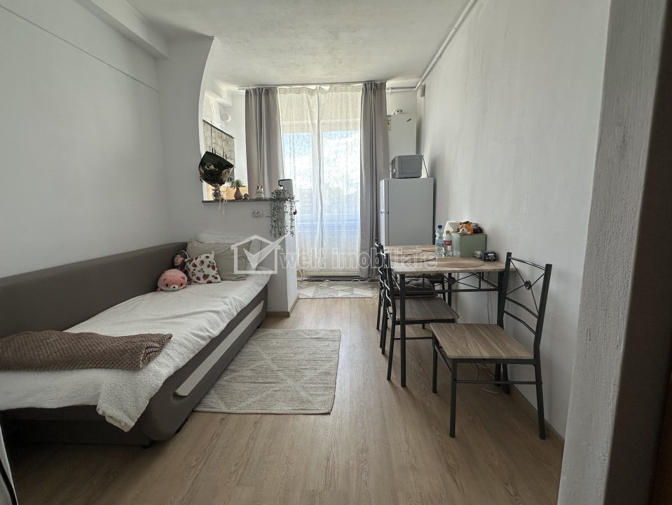 Garsonieră de vânzare | 18 mp | Iris B-dul | Zona Bd. Muncii Cluj-Napoca, Iris 1 camera • 18 m2 • 1 baie • etaj 4/4 • semidecomandatmobilat complet pret vanzare negociabil 55.000 € + 3 Caracteristici Tip locuinta Apartament Tip imobil bloc de apartamente Numar camere 1 Numar bucatarii 1 Numar bai 1 Parcare nu Supr. construita 21 m2 Suprafata utila 18 m2 Compartimentare Semidecomandat Confort 3 Etaj 4/4 Construit cu Caramida An constructie 1980 Disponibilitate imediat Descrierea Apartamentului Welt Imobiliare are placerea de a va oferi spre vanzare un apartament cu 1 camere situat intr-un imobil din cartierul Iris, Cluj-Napoca. Apartamentul se afla la etajul 4 unui imobil cu 4 etaje si dispune de o suprafata utila de 18 mp mp, garsoniera dispune de bucatarie si baie, de mentionat ca baia nu este trecuta in CF, garsoniera mai dispune si de o boxa la subsol. Este alegerea perfecta pentru investiție, garsoniera se poate achiziționa cu preluare de chiriaș. Contactati-ne cu incredere pentru mai multe detalii! ID Proprietate - P54344 Utilitati, Finisaje Utilitati generale: Electricitate, Apa, Gaz, CanalizareSistem de incalzire Centrala termica Finisaje: Pereti (Vopsea lavabila), Podele (Parchet, Gresie), Ferestre cu geam termopan (PVC), Usa intrare (Metal) Dotari: Alte spatii utile (Boxa la subsol), Bucatarie (Mobilata), Contorizare (Apometre, Contor caldura, Contor gaz), Mobilat (Complet), Dotari imobil (Interfon), Electrocasnice (Frigider, Aragaz) Vecinatati si puncte de interes in zona Amenajare strazi (Asfaltate, Betonate), Iluminat stradal, Mijloace de transport in comun Numar vizualizari: 35 Actualizat: 2026-04-06 14:58:24