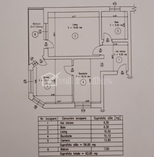 + 1 Caracteristici Tip locuinta Apartament Tip imobil bloc de apartamente Numar camere 2 Numar bucatarii 1 Numar bai 1 Numar balcoane 1 Parcare da Supr. construita 67 m2 Suprafata utila 56 m2 Compartimentare Semidecomandat Confort 1 Etaj parter/1 Construit cu Caramida An constructie 2012 Disponibilitate imediat Descrierea Apartamentului Welt Imobiliare va propune spre achizitie, un apartament semidecomandat, situat in Baciu, in zona strazii Viilor. Cladirea este un bloc de tip vila si a fost construit dupa cum urmeaza: demisol + parter+ etaj 1 + mansarda. Are o suprafata utila de 56 mp, se afla la parter si a fost compartimentat astfel: -> Hol intrare; -> Baie; -> Living; -> Bucatarie; -> Camera. Acesta se vinde la stadiul de finisat si nemobilat. Pentru orice detalii sau vizionari va rugam sa ne contactati telefonic. ID Proprietate: P50975 ID Proprietate - P50975 Utilitati, Finisaje Utilitati generale: Electricitate, Apa, Gaz, CanalizareSistem de incalzire Centrala termica, Calorifere Finisaje: Pereti (Vopsea lavabila), Podele (Parchet, Gresie), Usa intrare (Metal), Usi interior (Celulare, Lemn) Dotari: Contorizare (Apometre, Contor caldura, Contor gaz), Mobilat (Nemobilat), Dotari imobil (Interfon) Vecinatati si puncte de interes in zona Amenajare strazi (Asfaltate), Iluminat stradal, Mijloace de transport in comun Numar vizualizari: 496 Actualizat: 2025-11-13 10:30:39