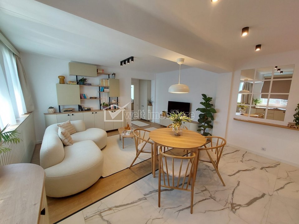 Apartament ultrafinisat, 2 camere de vanzare in Centru, Cluj Napoca Cluj-Napoca, Centru 2 camere • 47 m2 • 1 baie • etaj 2/5 • semidecomandatmobilat lux pret vanzare negociabil 195.000 € 194.900 € + 11 + 8 Vandut Caracteristici Tip locuinta Apartament Tip imobil bloc de apartamente Numar camere 2 Numar bucatarii 1 Numar bai 1 Parcare nu Supr. construita 65 m2 Suprafata utila 47 m2 Compartimentare Semidecomandat Confort 1 Etaj 2/5 Construit cu Caramida Disponibilitate imediat Descrierea Apartamentului Welt imobiliare va propune spre vanzare un apartament cochet, cu doua camere, renovat complet, situat in Piata Mihai Viteazu, la etajul 2/5. Ideal pentru locuit sau oportunitate excelentă de investiție (AIRBNB, etc). Apartamentul are orientare vest si este astfel compartimentat: hol acces, bucatarie cu living open space, debara, dormitor, hol secundar si baie cu geam. In pretul apartamentului este inclus un loc de parcare si o boxa, ca spatiu comun. Se vinde complet mobilat si utilat lux, inclusiv cu aer conditionat. Se afla situat la câțiva pași de mijloacele de transport, magazine, restaurante, cafenele, universități, centre de afaceri, parcuri și zone de recreere. Pentru mai multe detalii, nu ezitati sa ne contactati. ID Proprietate - P47515 Utilitati, Finisaje Utilitati generale: Electricitate, Apa, Gaz, CanalizareSistem de incalzire Centrala termicaClimatizare Aer conditionat Finisaje: Pereti (Vopsea lavabila, Faianta), Podele (Parchet, Gresie), Usa intrare (Metal) Dotari: Bucatarie (Mobilata, Utilata), Contorizare (Apometre, Contor gaz), Mobilat (Lux), Dotari imobil (Interfon) Vecinatati si puncte de interes in zona Piata Mihai Viteazul, McDonald's, NTT Data Amenajare strazi (Asfaltate, Betonate), Iluminat stradal, Mijloace de transport in comun Numar vizualizari: 915 Actualizat: 2025-07-29 10:43:02