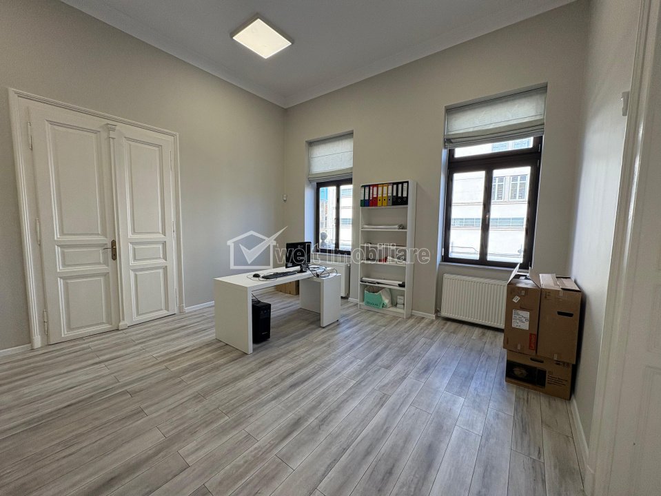 Apartament 2 camere ultracentral, ideal regim hotelier sau firma Cluj-Napoca, Centru 2 camere • 51.05 m2 • 1 baie • etaj 1/2 • semidecomandatfinisat • mobilat partial pret vanzare negociabil 219.000 € + 7 + 4 Caracteristici Tip locuinta Apartament Tip imobil casa/vila Numar camere 2 Numar bucatarii 1 Numar bai 1 Parcare nu Supr. construita 64 m2 Suprafata utila 51.05 m2 Compartimentare Semidecomandat Confort 1 Etaj 1/2 Construit cu Caramida Disponibilitate imediat Descrierea Apartamentului De vanzare apartament de 51 situat ultracentral pe blvd Eroilor colt cu piata Avram Iancu. Este compus din 2 incaperi foarte spatioase, hol si grup sanitar. Aceasta proprietate mereu a deservit sedii de firme si activitati de birouri. 4 ferestre cu orientare spre bulevardul Eroilor Are finisaje moderne si de calitate, ca atare, spatiul poate fi ocupat imediat. ID Proprietate - P51736 Utilitati, Finisaje Utilitati generale: Electricitate, Apa, Gaz, CanalizareSistem de incalzire Centrala termica, CalorifereClimatizare Aer conditionat Finisaje: Pereti (Vopsea lavabila, Faianta), Podele (Parchet, Gresie), Ferestre cu geam termopan (PVC, Lemn), Usa intrare (Metal) Dotari: Bucatarie (Partial mobilata, Partial utilata), Contorizare (Apometre, Contor gaz), Mobilat (Partial), Dotari imobil (Interfon, Acoperis, Curte, Curte comuna) Vecinatati si puncte de interes in zona Blvd Eroilor, pta Avram Iancu, Teatrul National Amenajare strazi (Asfaltate), Iluminat stradal, Mijloace de transport in comun Numar vizualizari: 528 Actualizat: 2026-01-29 14:22:23
