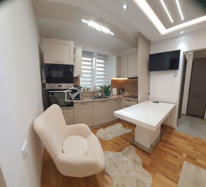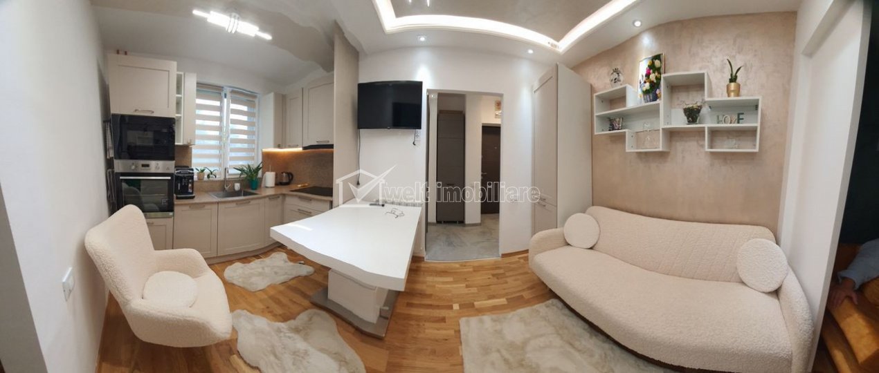 Apartament ultrafinisat cu 2 camere in Gheorgheni zona Hermes Cluj-Napoca, Gheorgheni 2 camere • 26 m2 • 1 baie • etaj 2/4 • semidecomandat pret vanzare 129.000 € + 5 Caracteristici Tip locuinta Apartament Tip imobil bloc de apartamente Numar camere 2 Numar bucatarii 1 Numar bai 1 Parcare nu Supr. construita 33 m2 Suprafata utila 26 m2 Compartimentare Semidecomandat Confort 2 Etaj 2/4 Disponibilitate imediat Descrierea Apartamentului Oferim spre vanzare apartament cu 2 camere in Gheorgheni, zona Hermes, la 3 statii de Centru Cluj Napoca si Iulius Mall. Este compus din 2 camere, bucatarie, hol si baie. Acesta este amplasat la etajul 2 intr-un bloc cu 4 etaje si se vinde mobilat si utilat. Pentru detalii suplimentare va stam la dispozitie. ID Proprietate - P49321 Utilitati, Finisaje Utilitati generale: Electricitate, Apa, Gaz, Canalizare Vecinatati si puncte de interes in zona Iulius Mall, FSEGA, Parc Sportiv Gheorgheni Numar vizualizari: 1130 Actualizat: 2025-11-05 14:13:12