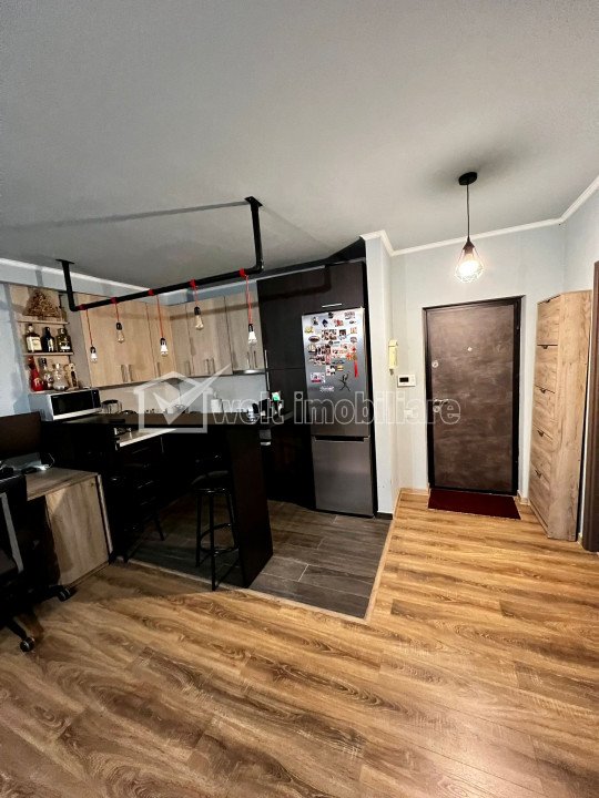 Caracteristici Tip locuinta Apartament Tip imobil bloc de apartamente Numar camere 2 Numar bucatarii 1 Numar bai 1 Numar balcoane 1 Parcare nu Supr. construita 70 m2 Suprafata utila 56 m2 Compartimentare Semidecomandat Etaj 6/7 Construit cu Caramida An constructie 2017 Disponibilitate imediat Descrierea Apartamentului Apartament de 2 camere semidecomandate situat in zona Vivo din Floresti. Apartamentul este situat intr-o zona excelenta pentru investitie, fiind la 5 minute de mers cu autobuzul de Cluj-Napoca. Apartamentul este situat la etajul 6 al unui imobil cu regim de inaltime S+P+7, finalizat in anul 2018. Suprafata utila este de 56mp si se prezinta astfel: - living open-space cu bucataria, - dormitor, - baie, - debara si balcon deschis de 12mp. Beneficiaza de finisaje si mobilier calitativ, totul fiind facut la comanda si se vinde utilat (frigider, plita, hota, masina de spalat vase) si complet mobilat dupa cum se vede in poze, mai putin lucrurile personale, masina de spalat haine si TV-ul. Confortul termic este asigurat de centrala proprie si calorifere. Apartamentul este luminos, cu orientare sudica si beneficiaza de soare pe toata durata zilei. Recomandam aceasta proprietate pentru investitie, fiind la momentul actual inchiriata. Zona este linistita, blocul fiind aproape de mijloacele de transport in comun, complex comercial Vivo, Hyper market Cora. Pentru mai multe detalii sau consultanta imobiliara de calitate, va stam la dispozitie cu drag. ID Proprietate - P35130 Utilitati, Finisaje Utilitati generale: Electricitate, Apa, Gaz, Canalizare, Cablu TVSistem de incalzire Termoficare, Centrala termica, Calorifere Finisaje: Izolatii termice (Bloc izolat termic), Pereti (Vopsea lavabila, Faianta), Podele (Parchet, Gresie), Usa intrare (Metal), Usi interior (Celulare) Dotari: Bucatarie (Mobilata), Contorizare (Apometre, Contor gaz), Mobilat (Complet), Dotari imobil (Interfon, Lift), Electrocasnice (Masina de spalat rufe, Frigider, Cuptor microunde, Hota) Vecinatati si puncte de interes in zona Vivo,Cora ,Centru Cluj, Manastur Amenajare strazi (Asfaltate), Iluminat stradal, Mijloace de transport in comun Numar vizualizari: 2066 Actualizat: 2023-12-14 17:09:13