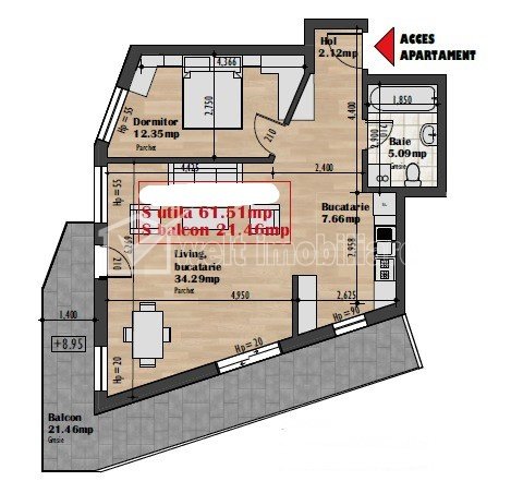 Vandut Caracteristici Tip locuinta Apartament Tip imobil bloc de apartamente Numar camere 2 Numar bucatarii 1 Numar bai 1 Numar terase 1 Parcare da Supr. construita 73 m2 Suprafata utila 61.51 m2 Compartimentare Semidecomandat Confort Marit Etaj 3/4 An constructie 2023 Disponibilitate imediat Descrierea Apartamentului Welt Imobiliare va prezinta spre vanzare un apartament cu 2 camere semidecomandat in cartieul Iris, zona Auchan. Apartamentul se afla la etajul 3 unui imobil nou, construit in 2023, dispus pe un regim de inaltime S+P+4E+Er, avand o suprafata utila de 61,51 m² + terasa 21,46 m². Compartimentarea a fost gandita astfel: - 1 living tip open-space cu bucatarie si doua iesiri la balcon - 1 dormitor - 1 baie spatioasa - hol In plus, imobilul este dotat cu centrala termica proprie si exista posibilitatea achizitionarii unui loc de parcare subteran. Apartamentul se vinde la stadiul semifinisat, pretul fiind 2200 euro/m² + 1000euro/m² terasa + TVA. Contactati-ne pentru informatii suplimentare sau pentru a stabili o vizionare! ID Proprietate - P48459 Utilitati, Finisaje Utilitati generale: ElectricitateSistem de incalzire Centrala termicaClimatizare Aer conditionat Finisaje: Usa intrare (Metal) Dotari: Bucatarie (Utilata), Mobilat (Nemobilat), Dotari imobil (Interfon, Lift) Vecinatati si puncte de interes in zona Amenajare strazi (Asfaltate), Iluminat stradal, Mijloace de transport in comun Numar vizualizari: 924 Actualizat: 2025-10-24 10:36:31