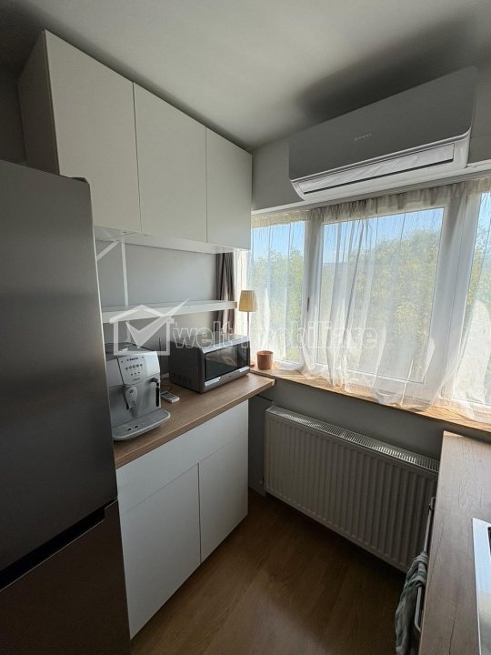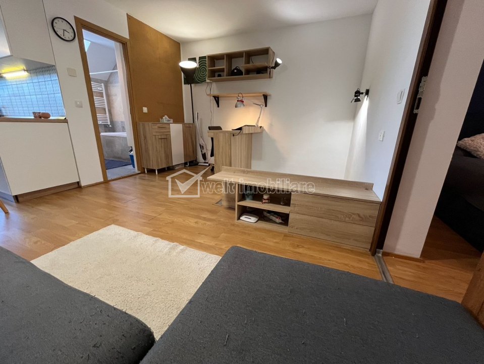 Apartament 2 camere, 50 mp, zona Frunzisului Cluj-Napoca, Manastur 2 camere • 50 m2 • 1 baie • etaj 2/2 • semidecomandatfinisat • mobilat complet pret vanzare negociabil 155.000 € + 19 + 16 Vandut Caracteristici Tip locuinta Apartament Tip imobil bloc de apartamente Numar camere 2 Numar bucatarii 1 Numar bai 1 Parcare nu Supr. construita 60 m2 Suprafata utila 50 m2 Compartimentare Semidecomandat Confort 1 Etaj 2/2 An constructie 2009 Disponibilitate imediat Descrierea Apartamentului De vanzare apartament cu living, un dormitor si o baie, situat la nivelul 2 din 3 intr-un bloc in zona Frunzisului din Cluj-Napoca, intr-o zona retrasa. Apartamentul este dispus pe doua nivele, cu scara interioara. La primul nivel este un hol, iar la nivelul de sus livingul cu bucataria, dormitorul si baia. Eficienta energetica a apartamentului este foarte buna: la exterior blocul are un termosistem de 15 cm, iar nivelul de deasupra este locuit, asa incat costurile cu incalzirea sau cu racirea sunt foarte mici. Apartamentul are centrala termica proprie TERMET EcoCondens 25 Silver Plus montata in oct. 2017 cu termostat smart Meross si aparat de aer conditionat VORTEX 12.000 BTU montat in iul. 2023. Ambele pot fi conectate la internet si comandate prin aplicatie de pe telefon. Electrocasnice: frigider Indesit, masina de spalat vase Beko, masina de spalat rufe cu uscator incorporat Beko, cuptor electric + plita pe gaz Hansa, hota Gorenje, cuptor cu microunde Whirlpool, espressor Saeco - toate cumparate in 2017. Zona este superba: fiind retras cu aprox. 100 m fata de strada si inconjurat de copaci, blocul este intr-o oaza de verdeata in care nu se aude zgomotul orasului si aerul este curat. USAMV este la 10 minute de mers pe jos. Toate obiectivele UTCN de pe str. Observatorului sunt accesibile direct cu autobusul 43. Parcul central si perimetrul UNTOLD se afla la 15-20 min. de mers pe jos. In apropiere se gasesc magazine (inclusiv Lidl si Kaufland), farmacii, sali de fitness, piata etc. Accesul este foarte usor, in orice zona a orasului: in imediata vecinatate a imobilului sunt mijloace de transport. Apartamentul se vinde complet mobilat si utilat, asa cum se vede in poze, inclusiv electrocasnicele. Ocupabil imediat. ID Proprietate - P50372 Utilitati, Finisaje Utilitati generale: ElectricitateSistem de incalzire Centrala termica Finisaje: Izolatii termice (Exterior) Dotari: Mobilat (Complet) Vecinatati si puncte de interes in zona Frunzisului Amenajare strazi (Asfaltate), Iluminat stradal, Mijloace de transport in comun Numar vizualizari: 830 Actualizat: 2025-10-16 16:06:27