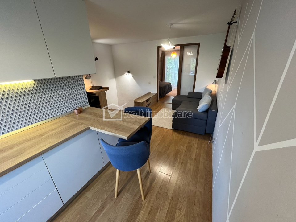 Caracteristici Tip locuinta Apartament Tip imobil bloc de apartamente Numar camere 2 Numar bucatarii 1 Numar bai 1 Parcare nu Supr. construita 60 m2 Suprafata utila 50 m2 Compartimentare Semidecomandat Confort 1 Etaj 2/2 An constructie 2009 Disponibilitate imediat Descrierea Apartamentului De vanzare apartament cu living, un dormitor si o baie, situat la nivelul 2 din 3 intr-un bloc in zona Frunzisului din Cluj-Napoca, intr-o zona retrasa. Apartamentul este dispus pe doua nivele, cu scara interioara. La primul nivel este un hol, iar la nivelul de sus livingul cu bucataria, dormitorul si baia. Eficienta energetica a apartamentului este foarte buna: la exterior blocul are un termosistem de 15 cm, iar nivelul de deasupra este locuit, asa incat costurile cu incalzirea sau cu racirea sunt foarte mici. Apartamentul are centrala termica proprie TERMET EcoCondens 25 Silver Plus montata in oct. 2017 cu termostat smart Meross si aparat de aer conditionat VORTEX 12.000 BTU montat in iul. 2023. Ambele pot fi conectate la internet si comandate prin aplicatie de pe telefon. Electrocasnice: frigider Indesit, masina de spalat vase Beko, masina de spalat rufe cu uscator incorporat Beko, cuptor electric + plita pe gaz Hansa, hota Gorenje, cuptor cu microunde Whirlpool, espressor Saeco - toate cumparate in 2017. Zona este superba: fiind retras cu aprox. 100 m fata de strada si inconjurat de copaci, blocul este intr-o oaza de verdeata in care nu se aude zgomotul orasului si aerul este curat. USAMV este la 10 minute de mers pe jos. Toate obiectivele UTCN de pe str. Observatorului sunt accesibile direct cu autobusul 43. Parcul central si perimetrul UNTOLD se afla la 15-20 min. de mers pe jos. In apropiere se gasesc magazine (inclusiv Lidl si Kaufland), farmacii, sali de fitness, piata etc. Accesul este foarte usor, in orice zona a orasului: in imediata vecinatate a imobilului sunt mijloace de transport. Apartamentul se vinde complet mobilat si utilat, asa cum se vede in poze, inclusiv electrocasnicele. Ocupabil imediat. ID Proprietate - P50372 Utilitati, Finisaje Utilitati generale: ElectricitateSistem de incalzire Centrala termica Finisaje: Izolatii termice (Exterior) Dotari: Mobilat (Complet) Vecinatati si puncte de interes in zona Frunzisului Amenajare strazi (Asfaltate), Iluminat stradal, Mijloace de transport in comun Numar vizualizari: 830 Actualizat: 2025-10-16 16:06:27