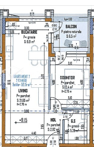 Caracteristici Tip locuinta Apartament Tip imobil bloc de apartamente Numar camere 2 Numar bucatarii 1 Numar bai 1 Numar balcoane 1 Parcare da Supr. construita 66 m2 Suprafata utila 52 m2 Compartimentare Semidecomandat Confort 1 Etaj 1/6 Disponibilitate imediat Descrierea Apartamentului Oferim spre vanzare apartamente cu 2 si 3 camere intr-un bloc nou Situat in Cluj-Napoca aproape de Iulius Mall si Expo Transilvania. Stadiu de predare va fi Semifinisat, cu Suprafața utilă între: 51.5 m2 și 77.4 m2, iar imobilul va avea regimul de inaltime 2S + P + 6 Pret: 2.600€/mp + TVA, Parcări subterane: 20.000 euro, la Avans minim 50% Proiectul Beneficiaza de Centrală termică de bloc, Încălzire în pardoseală, Geamuri cu tâmplărie PVC și 7 sticle, Spații comerciale și servicii la parter, Lift silențios. Pentru alte detalii, asteptam sa ne contactati. ID Proprietate - P48603 Utilitati, Finisaje Utilitati generale: Electricitate, Apa, Gaz, CanalizareSistem de incalzire Centrala de imobil Finisaje: Izolatii termice (Bloc izolat termic), Usa intrare (Metal) Dotari: Contorizare (Apometre, Contor gaz), Dotari imobil (Interfon, Videointerfon, Lift) Vecinatati si puncte de interes in zona Iulius Mall, FSEGA, Parc Sportiv Gheorgheni Amenajare strazi (Asfaltate, Betonate), Iluminat stradal, Mijloace de transport in comun Numar vizualizari: 876 Actualizat: 2025-10-27 08:42:51