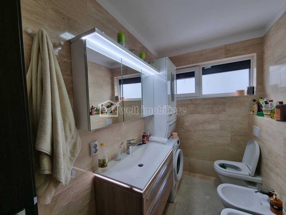 Apartament lux, 2 camere+terasa 60mp+2 parcari subterane, Zorilor Sud Cluj-Napoca, Zorilor 2 camere • 53.92 m2 • 1 baie • etaj parter/4 • semidecomandatmobilat lux pret vanzare negociabil 164.000 € comision 0% la cumparare • + 14 + 11 Vandut Exclusivitate Caracteristici Tip locuinta Apartament Tip imobil bloc de apartamente Numar camere 2 Numar bucatarii 1 Numar bai 1 Numar terase 3 Parcare da Supr. construita 120 m2 Suprafata utila 53.92 m2 Compartimentare Semidecomandat Confort Marit Etaj parter/4 Construit cu Caramida An constructie 2018 Disponibilitate imediata Descrierea Apartamentului Exclusivitate! Comision 0 la cumparator! Welt Imobiliare va propune spre vanzare un apartament superb, la cheie, cu 2 camere + 2 terase + 2 parcari subterane in cartierul Zorilor Sud, zona strazii Nicolae Steinhardt. Este situat la parterul unui imobil nou D+P+4+M, construit in 2018, cu o suprafata utila de 54 mp, la care se adauga doua terase cu suprafata de aproximativ 60mp + o a treia terasa comuna. Zona este una foarte buna a cartierului, linistita, retrasa si cu verdeata, ideala pentru locuit, cu acces rapid catre Calea Turzii si alte puncte de interes ale orasului. In imediata apropiere se afla mijloace de transport in comun, farmacii, magazine, restaurante, cafenele, spatii de joaca pentru copii etc. Compartimentarea este semidecomandata, in urmatoarea dispunere: - 1 living open space cu bucatarie si iesire pe terasa; - 1 dormitor cu iesire pe a doua terasa; - 1 baie cu geam; - 1 hol. La acestea se adauga terasele si doua parcari subterane cu CF, incluse in pret. Finisajele ultramoderne sunt evidentiate astfel: - pardoseala cu parchet laminat de calitate superioara; - pereti cu stucco veneziano; - ferestre termoizolante cu tamplarie PVC; - gresie si faianta de calitate superioara in baie; - usa de la intrare metalica, antiefractie; - usi interioare din lemn. Incalzirea se face cu centrala termica proprie, apartamentul dispunand de calorifere. Apartamentul se vinde mobilat, cu mobila din MDF facuta la comanda, si utilat, cu electrocasnice de ultima generatie. Imobilul este construit in 2018, din caramida pe structura de beton, este izolat si dispune de lift, interfon si alarma. Recomandam aceasta proprietate atat pentru locuit cat si pentru investitie, datorita confortului pe care il ofera, a pozitiei, a compartimentarii, a finisajelor si a mobilierului, toate exceptionale. Pentru programarea unei vizionari, nu ezitati sa ne contactati. Echipa Welt Imobiliare ID Proprietate - P30081 Utilitati, Finisaje Utilitati generale: Electricitate, Apa, Gaz, Canalizare, Cablu TVSistem de incalzire Centrala termica, CalorifereClimatizare Aer conditionat Finisaje: Izolatii termice (Bloc izolat termic), Pereti (Vopsea lavabila), Podele (Parchet, Gresie), Ferestre cu geam termopan (PVC), Jaluzele (Orizontale), Usa intrare (Metal), Usi interior (Lemn) Dotari: Alte spatii utile (Terasa, Debara), Bucatarie (Mobilata, Utilata), Contorizare (Apometre, Contor caldura, Contor gaz), Mobilat (Lux), Dotari imobil (Interfon, Lift, Curte, Curte comuna, Gradina), Electrocasnice (Masina de spalat rufe, Frigider, Aragaz, TV, Cafetiera, Cuptor microunde, Hota) Vecinatati si puncte de interes in zona OMV Calea Turzii, Eugen Ionesco Amenajare strazi (Asfaltate), Iluminat stradal, Mijloace de transport in comun Numar vizualizari: 757 Actualizat: 2024-01-23 14:24:29