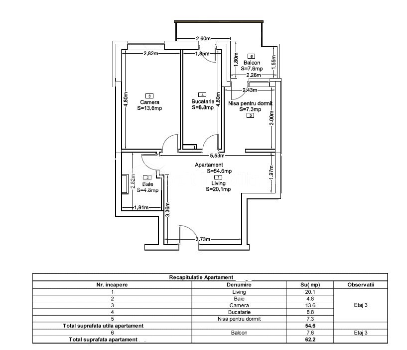 Apartament 55mp, FINISAT, 2 camere + nisa/birou, zona Lidl Frunzisului Cluj-Napoca, Zorilor 2 camere • 55 m2 • 1 baie • etaj 3/14 • decomandatfinisat • nemobilat pret vanzare negociabil 165.000 € + TVA + 6 + 3 Vandut Caracteristici Tip locuinta Apartament Tip imobil bloc de apartamente Numar camere 2 Numar bucatarii 1 Numar bai 1 Numar balcoane 1 Parcare nu Supr. construita 65 m2 Suprafata utila 55 m2 Compartimentare Decomandat Confort 1 Etaj 3/14 Construit cu Beton An constructie 2025 Disponibilitate imediat Descrierea Apartamentului Apartament 2 cam + nisa de dormit, situat in noul complex rezidential de langa Lidl Frunzisului Suprafata utila 55mp, compus din living, bucatarie separata, dormitor, baie, nisa de dormit/ camera studiu sau camera bebe si terasa. Apartamentul se vinde FINISAT La pretul afisat se adauga TVA : 165.000 +TVA = 199.650 eur Loc parcare exterioara la pretul de 12.000 eur + TVA ID Proprietate - P51565 Utilitati, Finisaje Utilitati generale: Electricitate, Apa, Gaz, Canalizare, Cablu TVSistem de incalzire Centrala termica, Calorifere Finisaje: Izolatii termice (Exterior, Bloc izolat termic), Pereti (Vopsea lavabila), Podele (Parchet, Gresie), Usa intrare (Metal), Usi interior (Lemn) Dotari: Alte spatii utile (Terasa), Mobilat (Nemobilat), Dotari imobil (Videointerfon, Lift, Spatii agrement), Diverse (Senzor de fum, Sistem de alarma) Vecinatati si puncte de interes in zona LIDL Frunzisului Amenajare strazi (Asfaltate), Iluminat stradal, Mijloace de transport in comun Numar vizualizari: 633 Actualizat: 2025-12-22 12:38:05