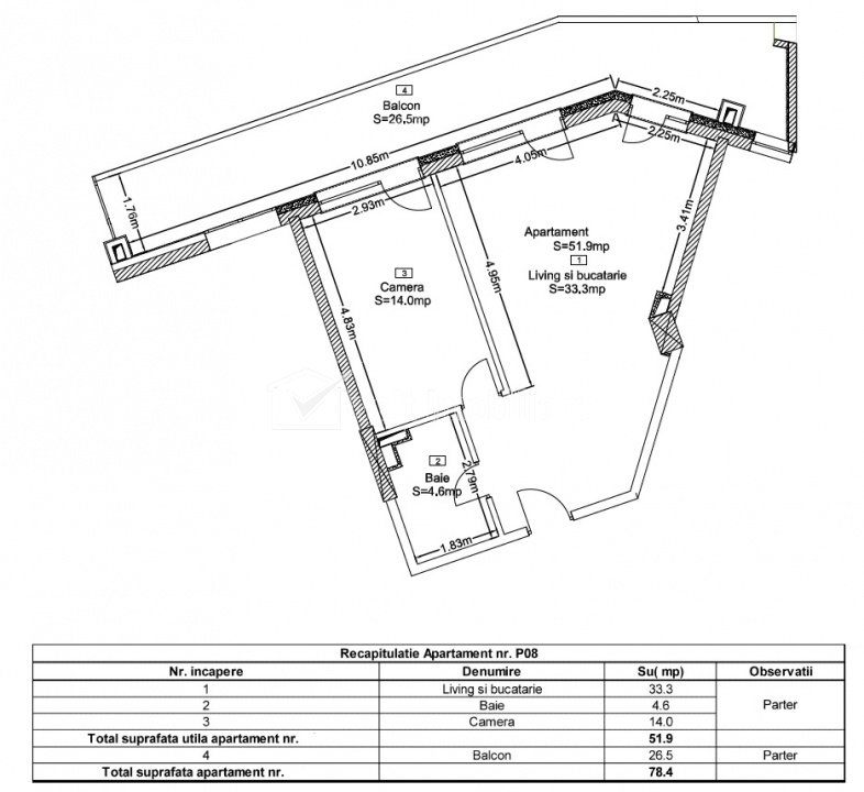 Caracteristici Tip locuinta Apartament Tip imobil bloc de apartamente Numar camere 2 Numar bucatarii 1 Numar bai 1 Numar balcoane 1 Numar terase 1 Parcare nu Supr. construita 88 m2 Suprafata utila 52 m2 Compartimentare Semidecomandat Confort 1 Etaj parter/14 Construit cu Beton An constructie 2025 Disponibilitate imediat Descrierea Apartamentului Oferim spre vânzare un apartament modern situat în ansamblul rezidențial Wings, cartier Zorilor, Cluj-Napoca. Apartament 2 camere 52mp, living si bucatarie open space, dormitor cu iesire pe terasa, baie spațioasă, centrală pe gaz și încălzire în pardoseala, terasă, orientare Est. . SEMIFINISAT Intabulat cu carte funciară – disponibil imediat, se poate accesa credit ipotecar Posibilitate achiziție loc de parcare: 12.000 EUR ID Proprietate - P53252 Utilitati, Finisaje Utilitati generale: Electricitate, Apa, Gaz, Canalizare, Cablu TVSistem de incalzire Centrala de imobil, Incalzire in pardoseala Finisaje: Izolatii termice (Bloc izolat termic), Rulouri/Obloane (PVC), Usa intrare (Metal) Dotari: Alte spatii utile (Terasa), Contorizare (Apometre), Mobilat (Nemobilat), Dotari imobil (Videointerfon, Lift, Gradina), Diverse (Sistem de alarma) Vecinatati si puncte de interes in zona WINGS Frunzisului, Lidl Amenajare strazi (Asfaltate), Iluminat stradal, Mijloace de transport in comun Numar vizualizari: 416 Actualizat: 2026-02-20 15:56:41